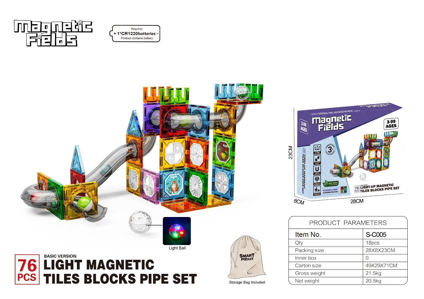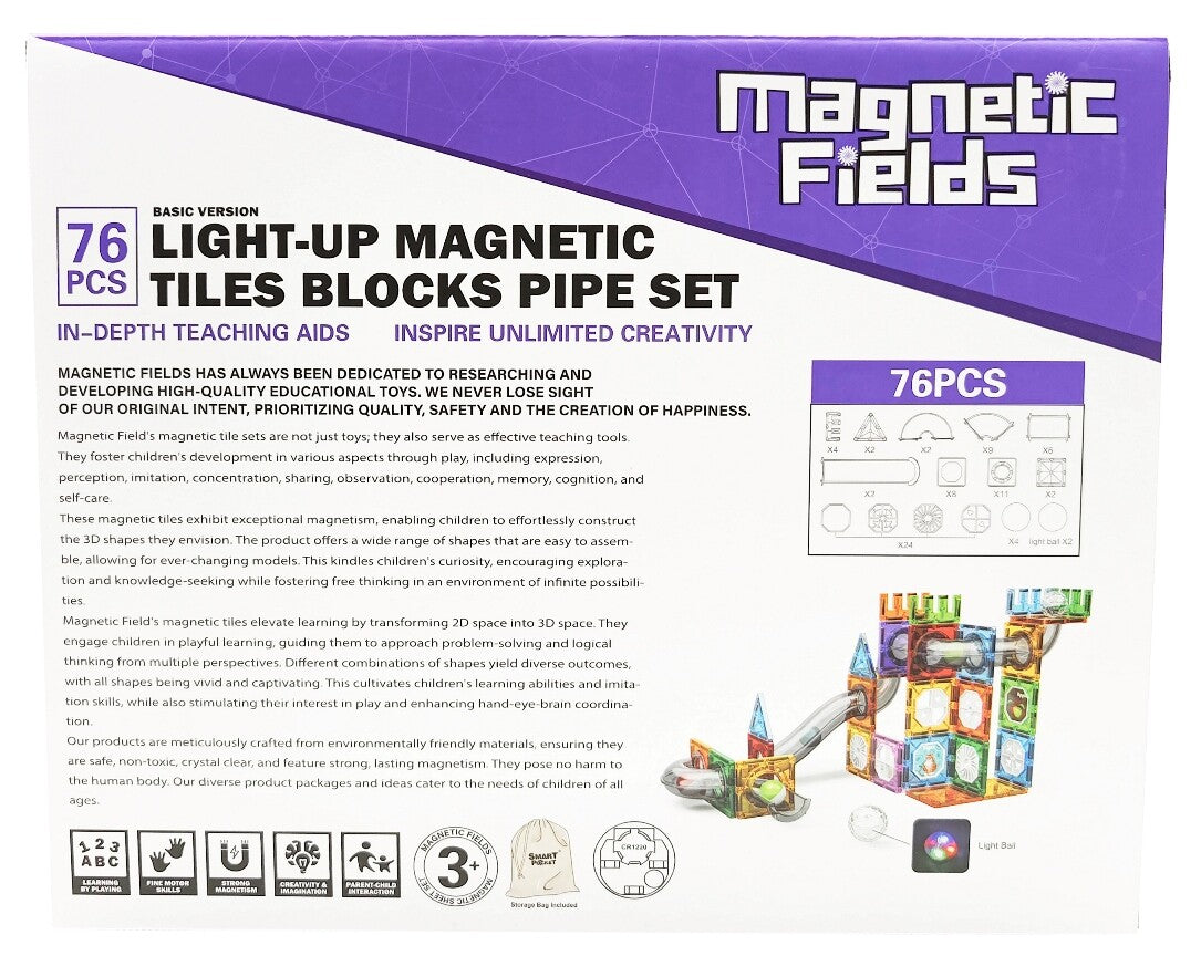 Magnetic Fields Light Magnetic Tiles Blocks Pipe Set - 76 Pcs offers an exciting and creative building experience, allowing children to design and construct glowing pipe systems with 76 colorful magnetic tiles that feature a built-in light function. Perfect for children aged 3 and up, this set sparks imagination while promoting STEM learning, fine motor skills, and spatial awareness. The light feature adds an extra layer of fun, making it ideal for both daytime and nighttime play. Whether building individually or in a group, the Light Magnetic Tiles Blocks Pipe Set provides endless hours of hands-on learning, creativity, and glowing exploration.