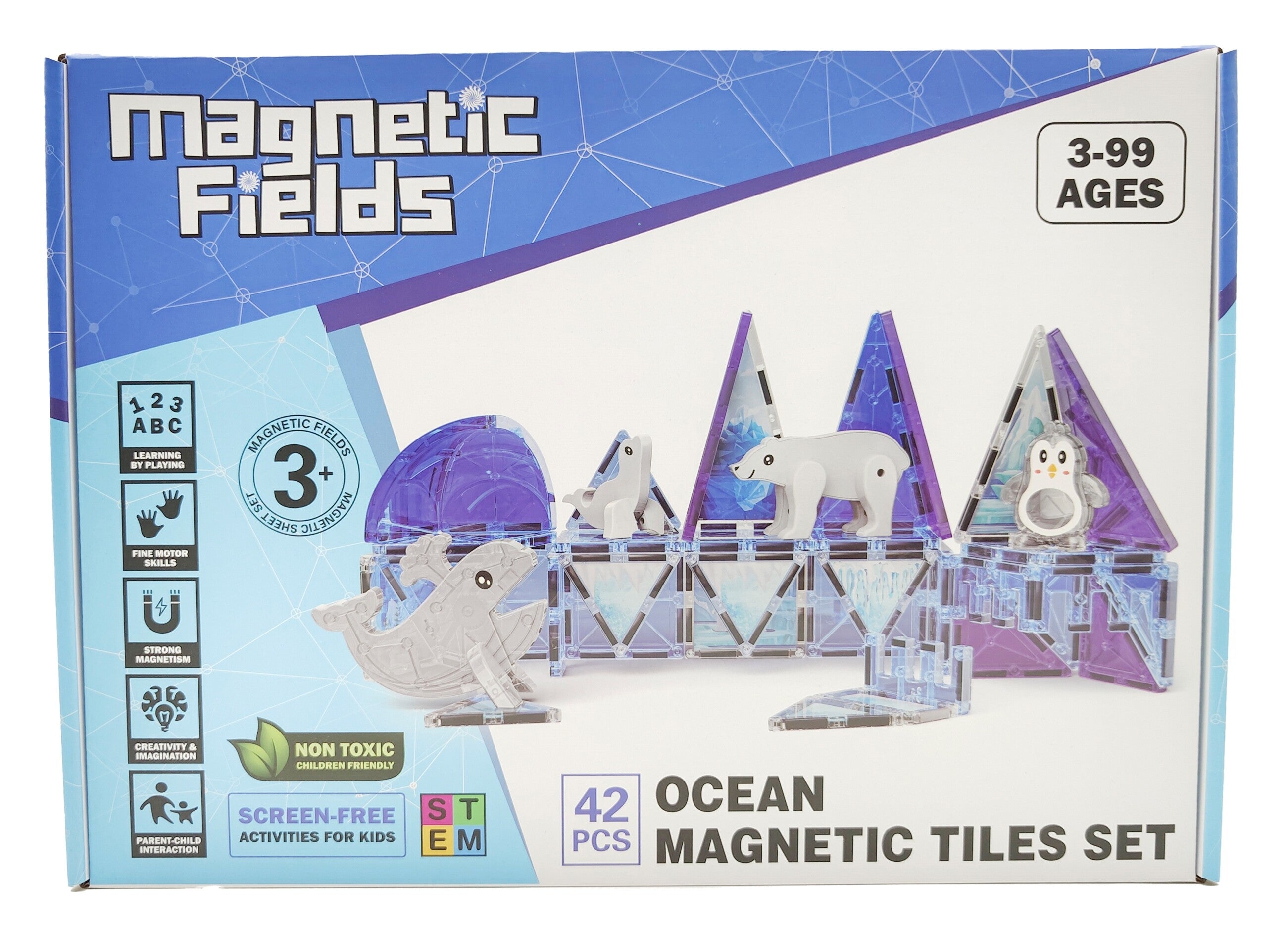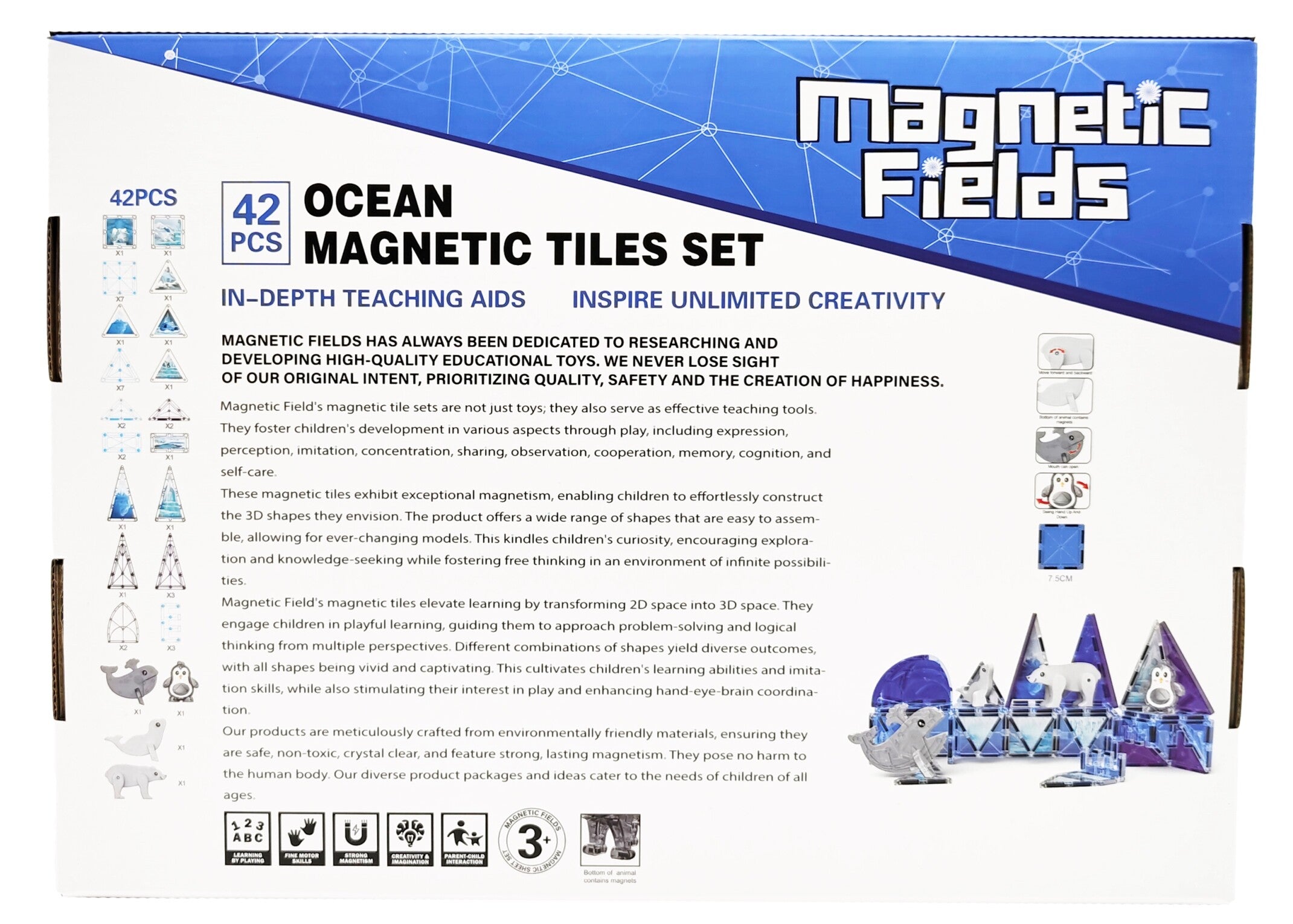 Magnetic Fields Ocean Magnetic Tiles Set - 42 Pcs offers children a creative way to explore the wonders of the ocean through hands-on play. With 42 vibrant magnetic tiles, this set allows young builders to create underwater scenes, sea animals, and aquatic structures, encouraging imagination and creativity. Ideal for children aged 3 and up, it promotes the development of fine motor skills, spatial awareness, and problem-solving abilities while introducing STEM concepts. Perfect for solo or group play, the Ocean Magnetic Tiles Set provides endless opportunities for learning, exploration, and fun in the ocean world.
