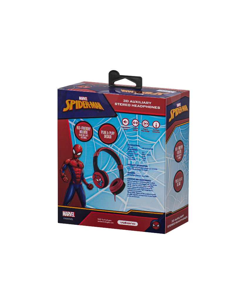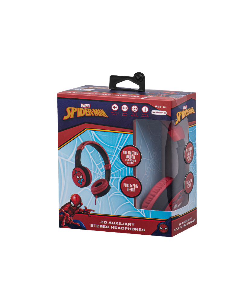 Swing into action with the Marvel Spider-Man 3D AUX Headphones! Featuring a bold 3D Spider-Man design, these headphones are perfect for young superhero fans. The adjustable headband and padded earcups provide a comfortable fit for hours of listening. With a kid-safe volume feature, their hearing is protected as they enjoy their favorite music or shows. The plug & play design with aux input ensures easy connectivity to any device, allowing your child to join Spider-Man on every thrilling adventure.