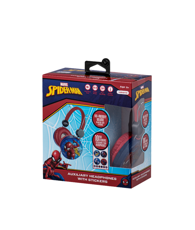 Unleash your child's inner superhero with the Marvel Spider-Man AUX Headphone! Perfect for young fans these headphones combine comfort and coolness with padded earcups that offer a cozy fit for extended use. The plug & play design makes it easy for your child to connect to any device with an AUX port, while the great stereo sound ensures their favorite tunes and shows sound amazing. With 10 awesome Spider-Man stickers included your little one can personalize their headphones and bring the web-slinging hero to life with every listen.