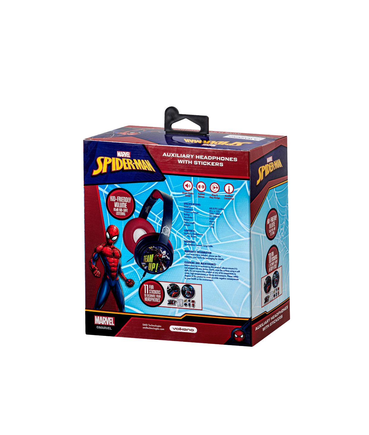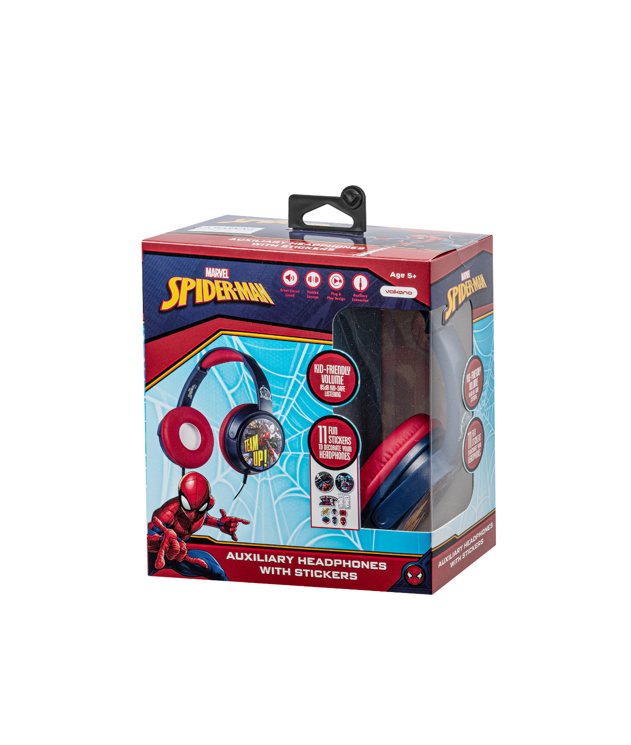 Swing into action with the Marvel Spider-Man AUX Headphones! Perfect for young superhero fans, these headphones feature soft padded earcups for comfortable extended wear. The easy plug & play design with an AUX connection allows your child to connect to any device and enjoy their favorite tunes or shows. With great stereo sound. Spider-Man’s adventures will sound better than ever. Plus with 11 awesome Spider-Man stickers your little one can personalize their headphones and bring their favorite hero to life.