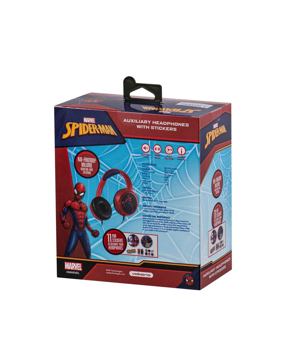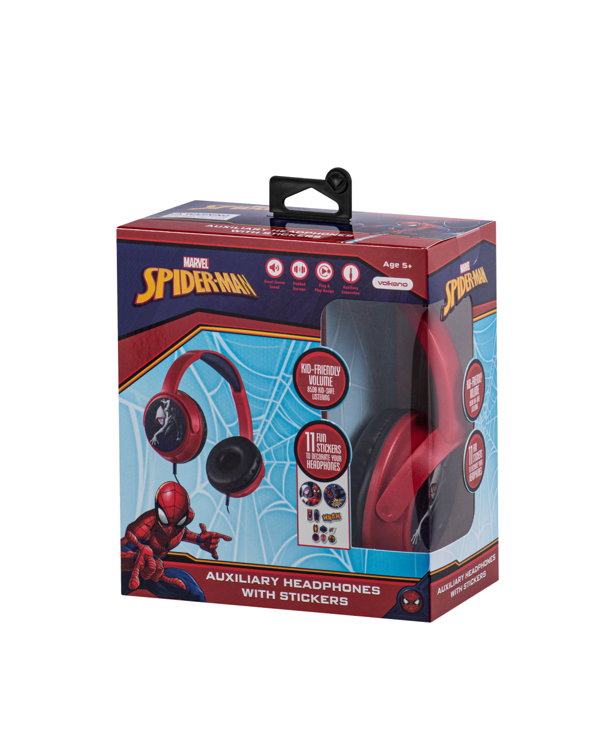 Swing into action with the Marvel Spider-Man AUX Headphones! Perfect for young superhero fans, these headphones feature soft padded earcups for comfortable extended wear. The easy plug & play design with an AUX connection allows your child to connect to any device and enjoy their favorite tunes or shows. With great stereo sound Spider-Man’s adventures will sound better than ever. Plus with 11 awesome Spider-Man stickers your little one can personalize their headphones and bring their favorite hero to life.