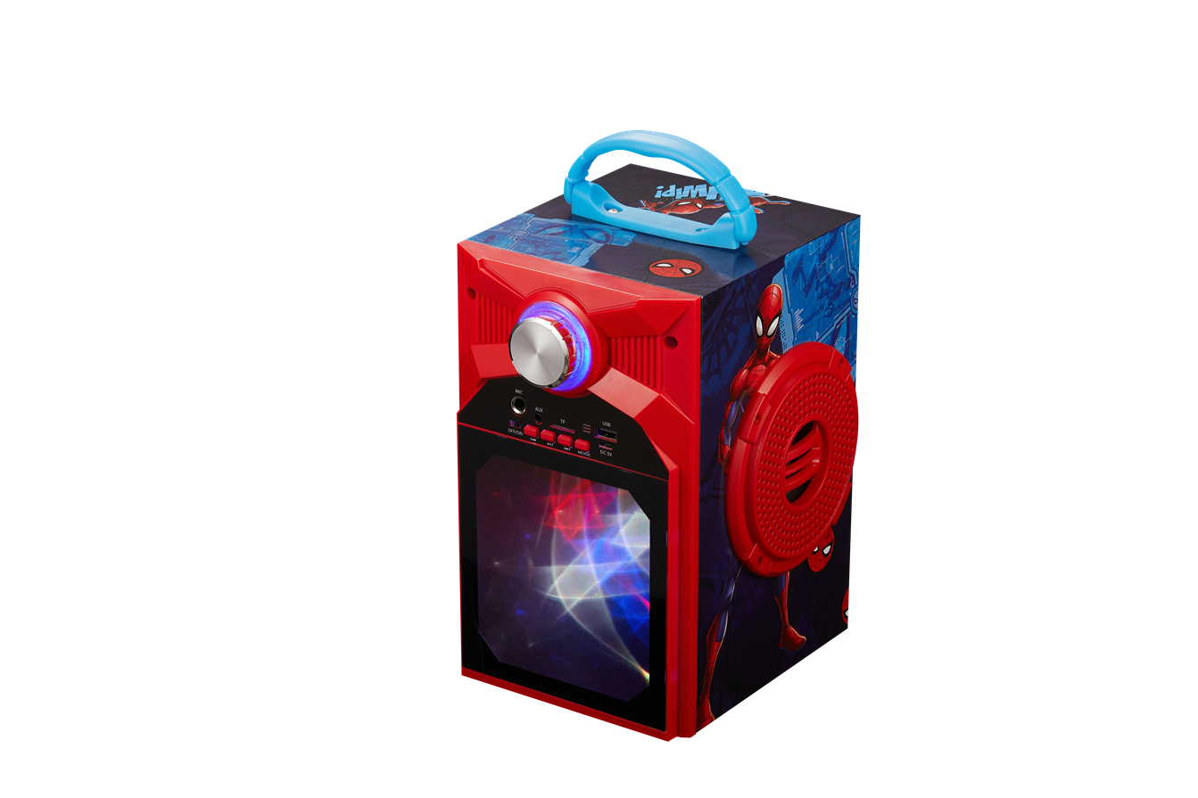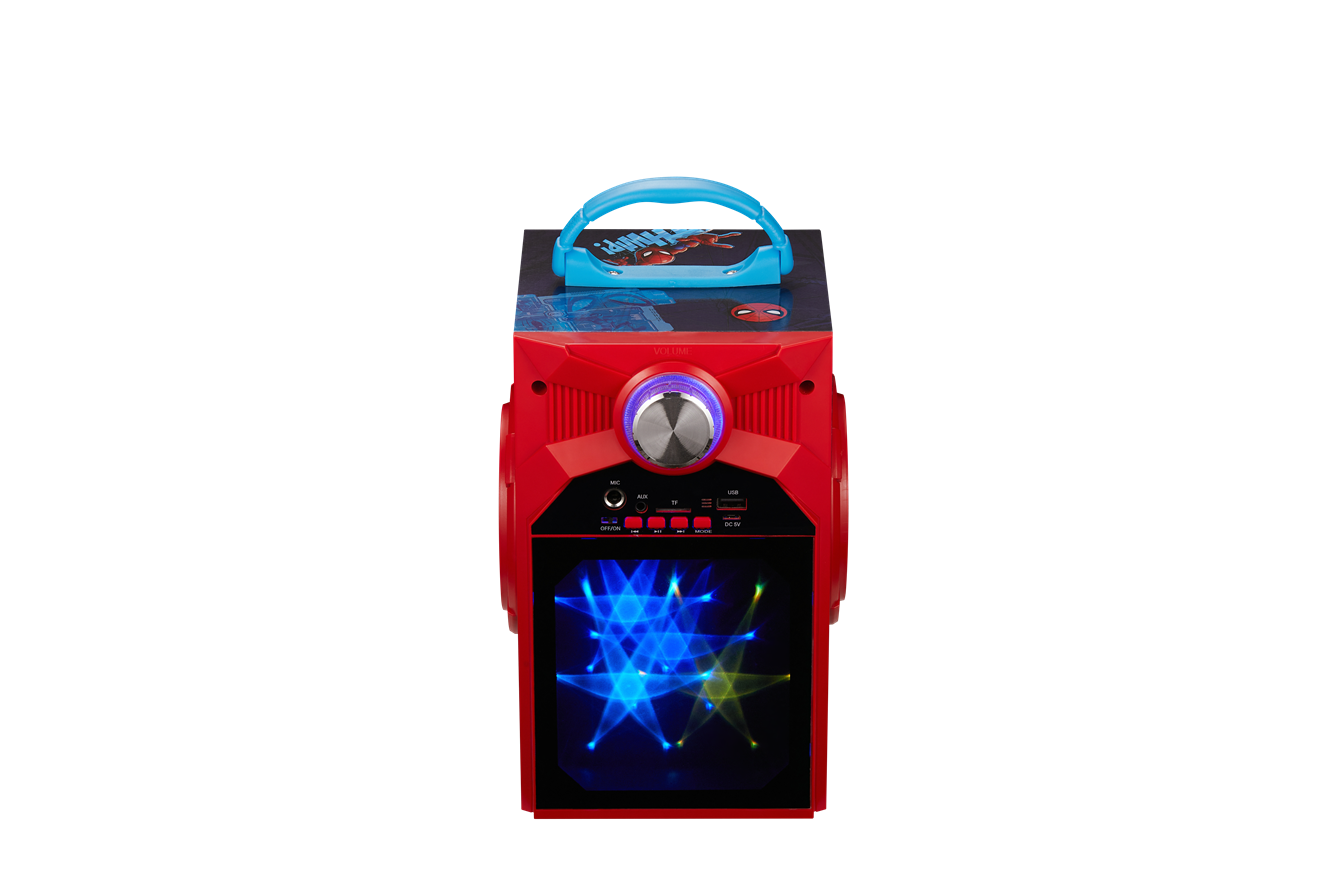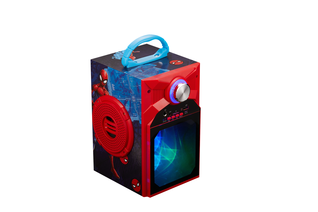 Marvel Spider-Man Galaxy LED Bluetooth Karaoke Machine has flashing colourful LED lights are perfect for creating your own concert at home or on the move and always making a lasting impression on all your “fans” (aka – mom, dad and all the cousins). The Bluetooth connection makes it easy to play any song of your choosing when paired to another Bluetooth device. Your kids will be able to sing their hearts out uninterrupted for up to four hours, keeping them entertained and stimulated while you sit back and relax and watch the show. With multiple other inputs, this karaoke machine does it all. It has a USB input port that can take up to 32GB of memory as well as a micro SD card reader port enabling you to download and play almost every song of your choice on this little machine. It also has an FM Radio function. The carry handle makes this karaoke machine easy to transport so you can take the party with you wherever you go. Features - Bluetooth, USB up to 32 GB, Micro SD Card up to 32 GB, FM Radio, Music Playback, Built-in Rechargeable Lithium-ion Battery, Flashing Colourful LED Party Lights, Carry Handle, Includes 1 x Wired detachable Mic, Specifications - Bluetooth, Power Output: 10mW, Charge Input: 5V DC/1A, Charging Time: 3 – 4 Hours, Play Time: 2 – 4 Hours, Signal to Noise Ratio: 60db, Frequency Range: 20Hz – 20kHz, Sensitivity: 80dB, Impedance: 4?, Battery: 1200mAh, Cable Length: 1.2m, Connection: 3.5mm AUX.
