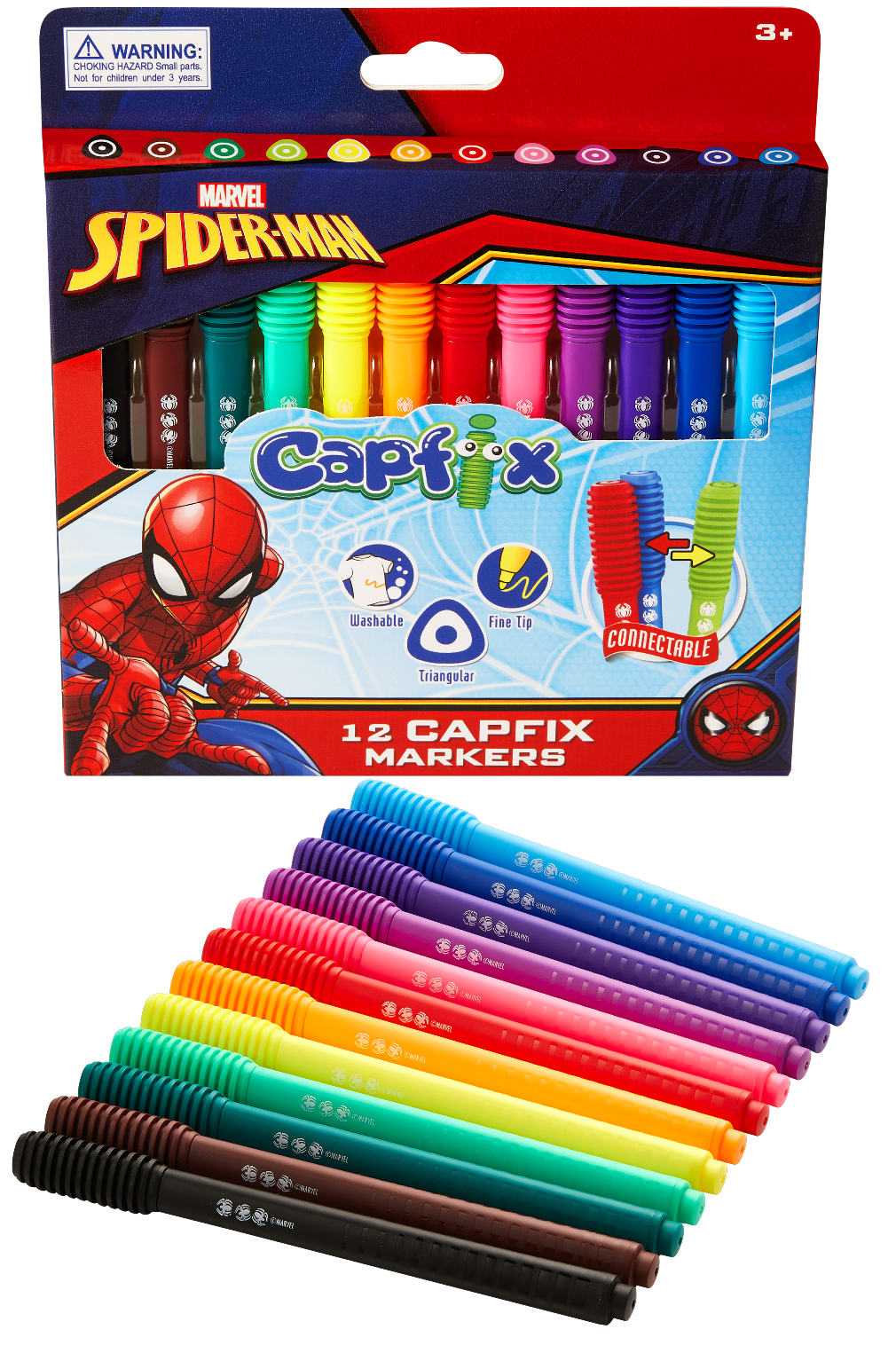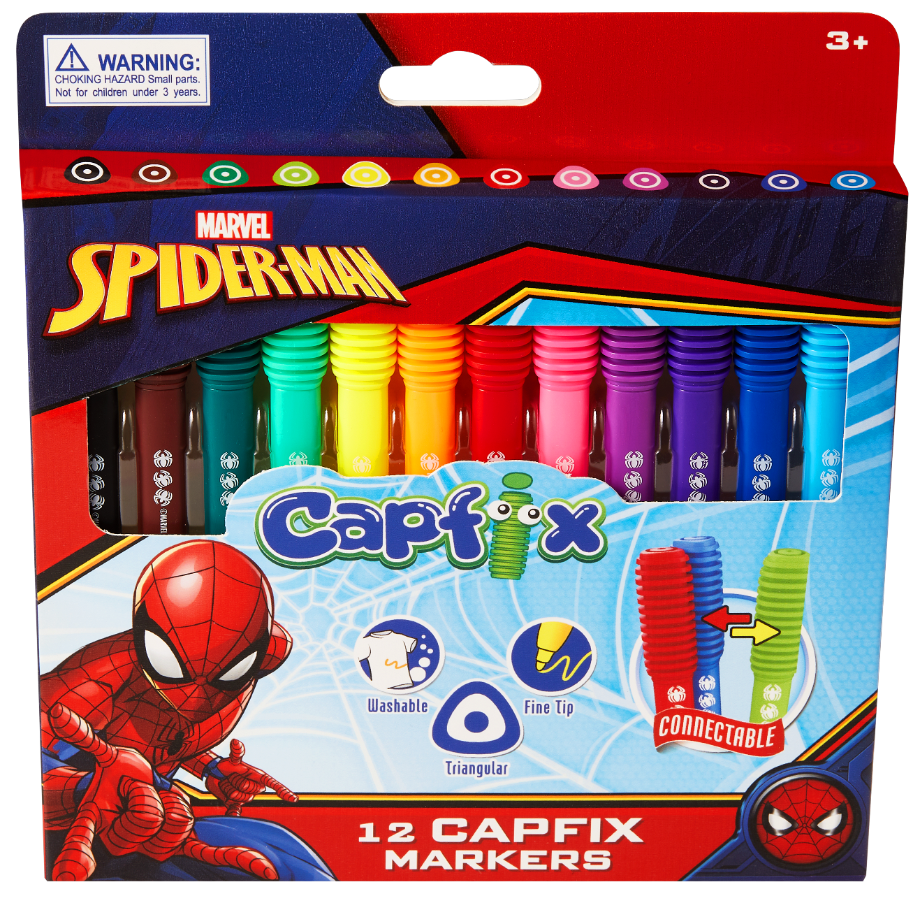 Marvel Spiderman Capfix Connectible Fibre Markers 12Pcs