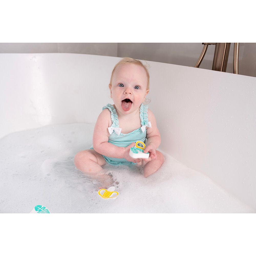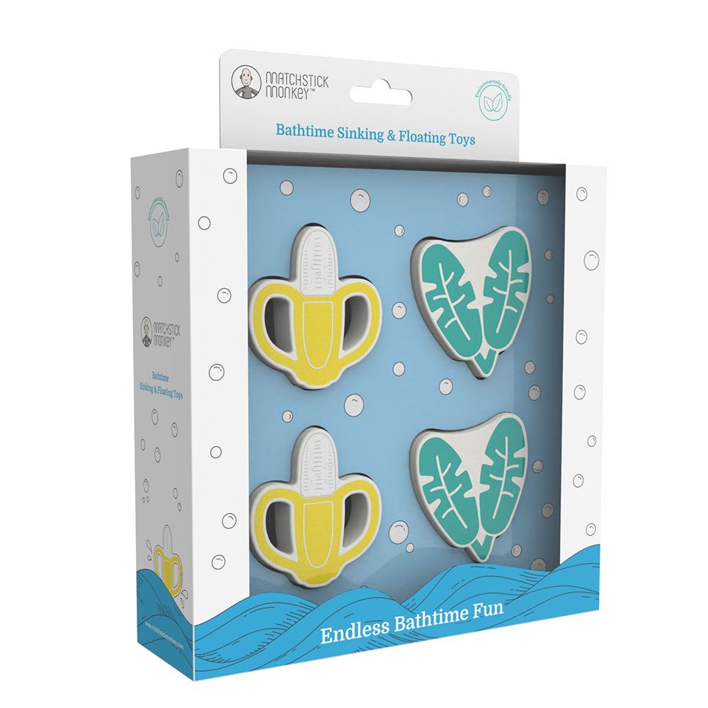 Splish, splash! This fun bathtime toy set includes 2 sinking and 2 floating bath toys. The bright bananas and leaves either sink or float when you throw them in the water, teaching children about the weight of items.