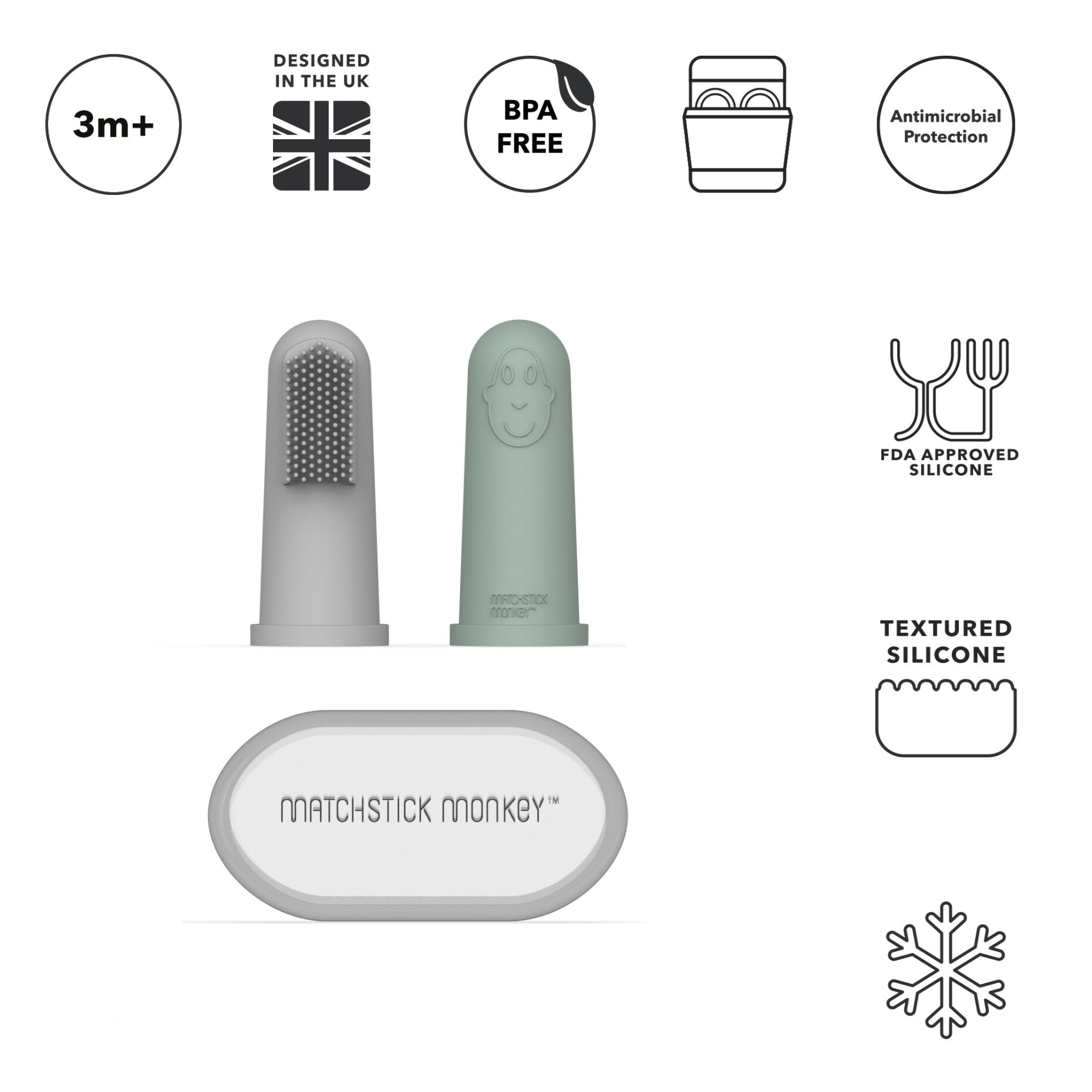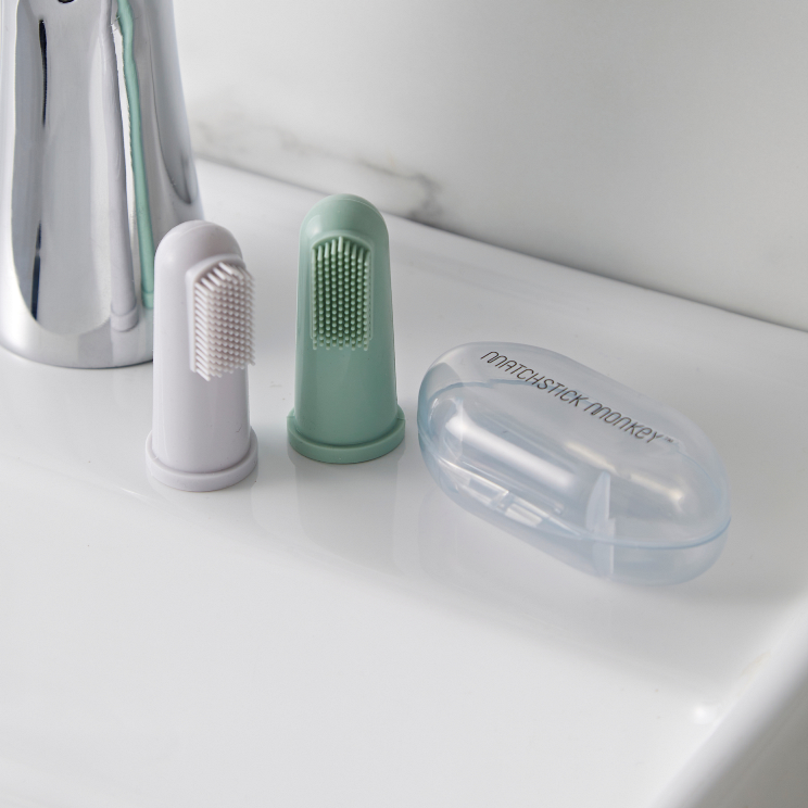 Soothe, clean, and massage your baby's gums with the Matchstick Monkey Finger Toothbrush. Designed for teething babies, its soft silicone bristles provide a gentle introduction to brushing, making oral care easy and comfortable from their very first tooth. The included portable case makes it perfect for on-the-go use.