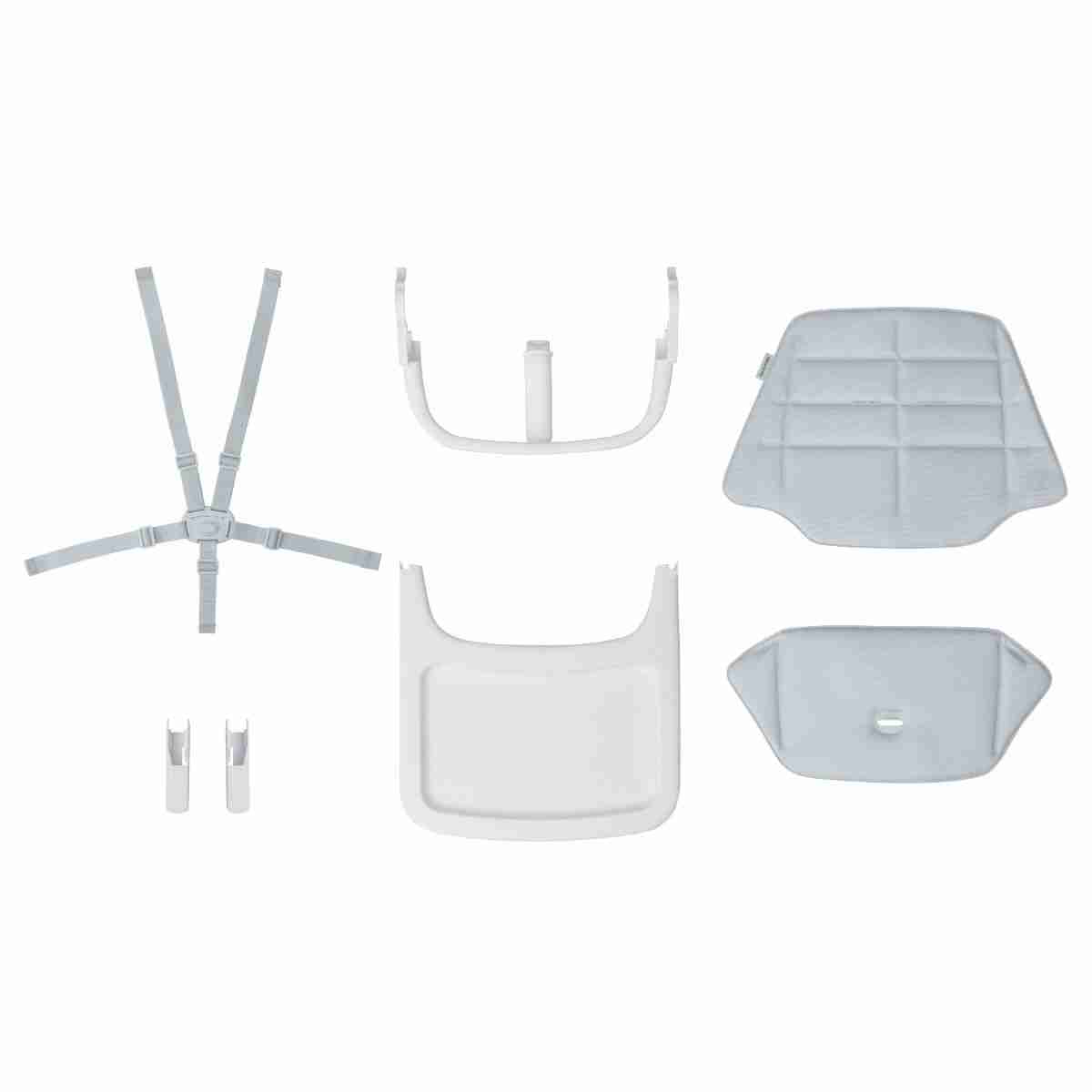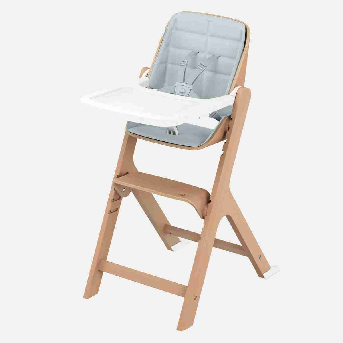 From approx. 6 months onwards, when your baby can sit unaided, Nesta offers the best comfort for your little one as they grow up. The unique high backrest offers great support as your little one learns to sit and eat around the table with the family. The kit includes an easy-to-clean, water-repellent, machine washable fabric inlay which is made from 100% recycled fabrics. , , As well as a tray, T-bar, extension feet for increased stability and safety and a harness to keep your little one comfortably in place.