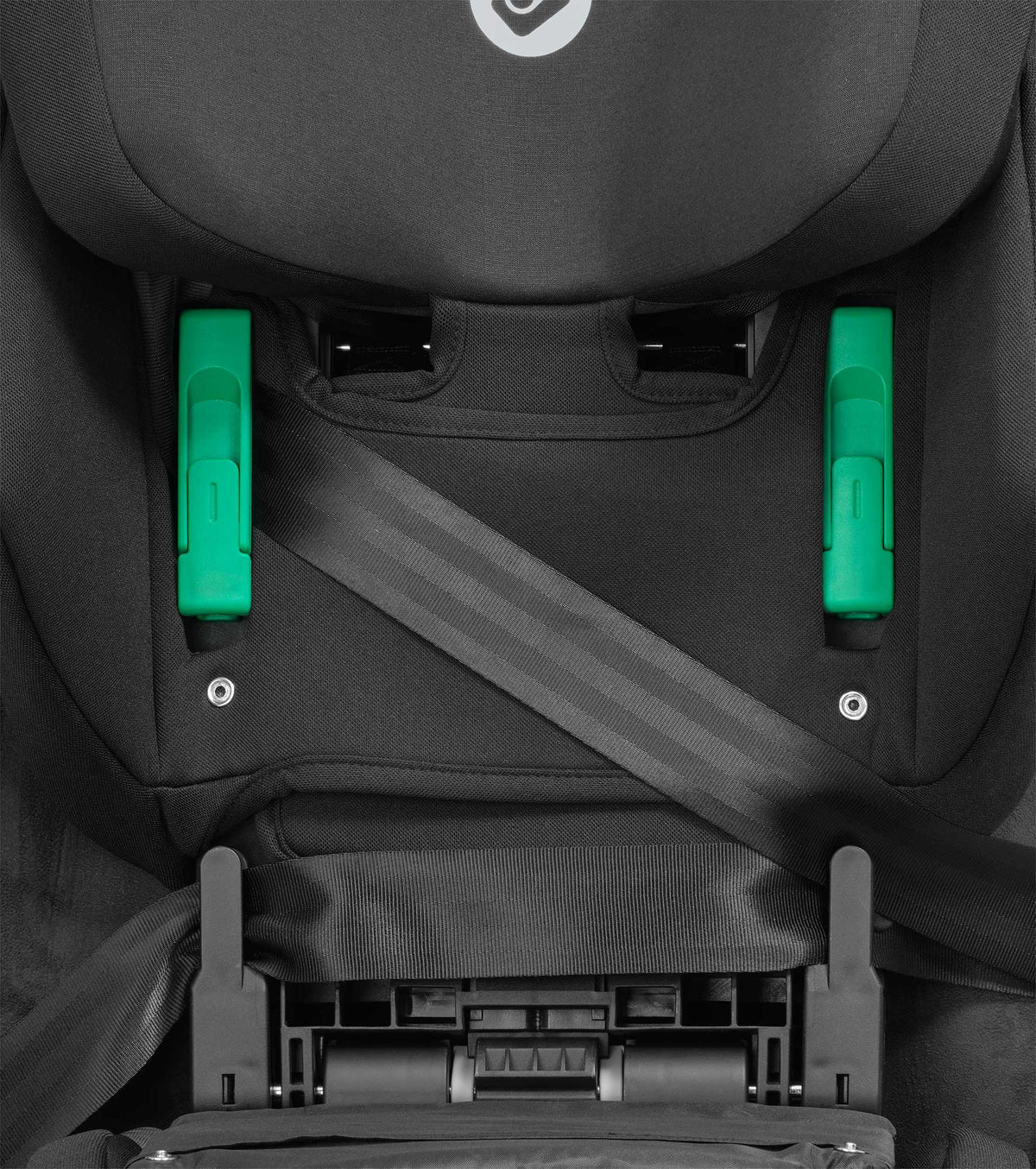 - The Maxi-Cosi Nomad Plus fits in every car by installing it with the Car Seatbelt. The belt routine is always visible, for the perfect installation. A 5-point safety harness makes sure your little one is always seated safely.