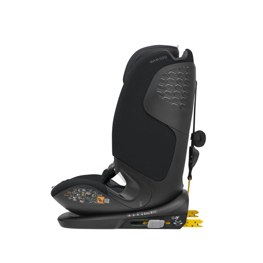 - Titan Pro i-Size is fitted quickly and effortlessly into any car, via ISOFIX installation and top-tether