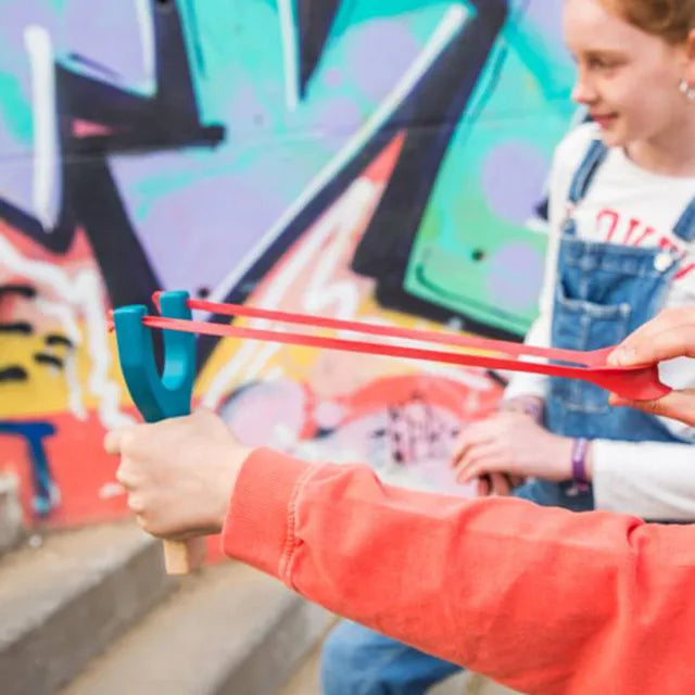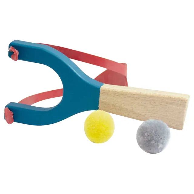 Fun is guaranteed with this eco friendly beech wood slingshot with 2 pom pom balls. Beutifully designed that will guarantee a return to simple sillyness and laughter. Amazing toy to refin aim and patience and improve coordination while playing safely. , , The perfect combination of a traditional toy with a modern twist, this slingshot is hand painted in contemporary pastel colours with ecological paint. A brilliant and unique choice gift perfect also as party giveway.