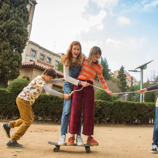Classic jump rope with a contemporary design handmade in Barcellona featuring a natural cotton rope and beech wood handle. Me & mine jump rope is a traditional toy that helps with leg coordination, balance and agility as well as physical resistance. We suggest your kids to jump to the rhythm of their favourite song to enjoy maximum fun and a complete physical exercise! , , The beautiful design and range of colours make this jump rope a great gift or party giveway!