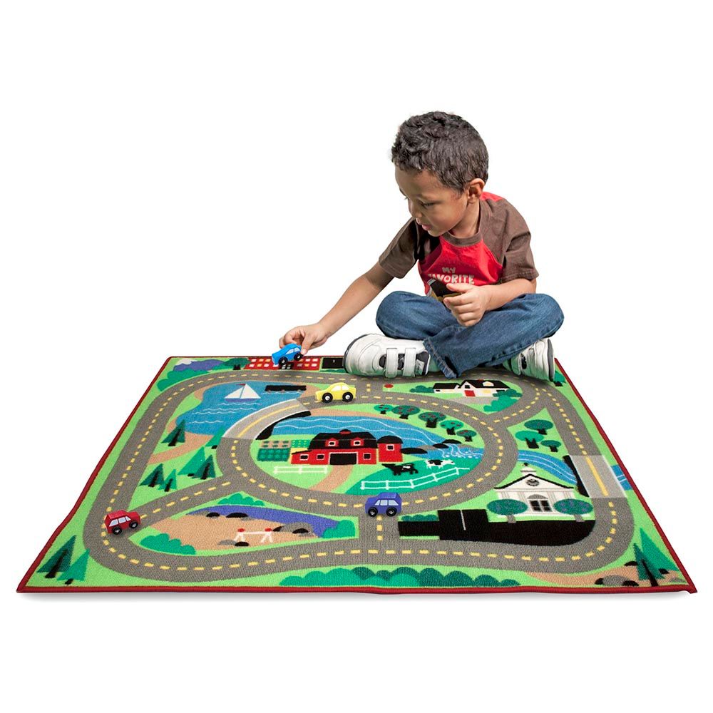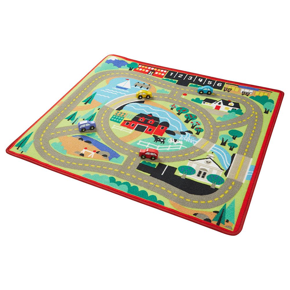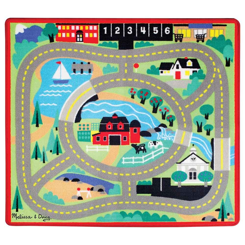 Embark on an exciting journey through a bustling town with the Melissa & Doug Around The Town Road Rug. This large, vibrantly illustrated rug provides an engaging play surface for all your child's toy cars, trucks, and other vehicles. Featuring a detailed town map with roads, buildings, a construction site, a school, a hospital, and more, it's the perfect backdrop for imaginative adventures and creative storytelling. Made with durable materials and a non-skid backing, this rug is built for hours of active play.