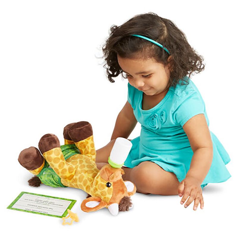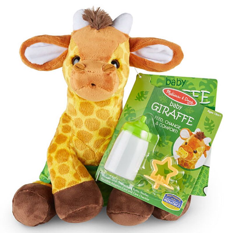 This realistic plush baby giraffe is designed for children aged 3 and up, offering a cuddly companion for imaginative play and comfort.