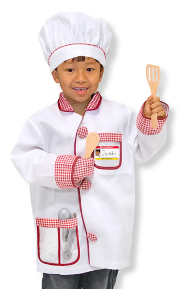 This delightful role-play set allows children to whip up imaginary culinary masterpieces as a professional chef. It includes a realistic chef's jacket, a chef's hat, an oven mitt, three wooden utensils, and a reusable name tag. This set encourages imaginative play, fosters creativity in the kitchen, and helps develop social skills as children "cook" and serve delicious pretend meals.