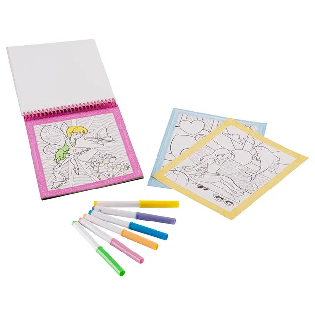 - Includes 6 felt-tip markers that store in the cover