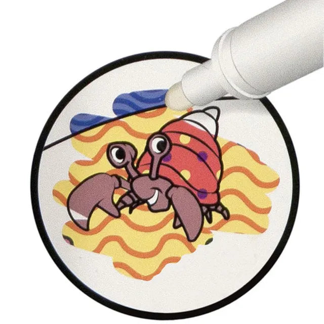 Use the "Magic" pen to color in the picture, and see vibrant colors, details, and patterns appear! Each page of the kids' activity book features a lively ocean-themed artwork to complete and a seek-and-find activity, too. Makes a great travel toy.