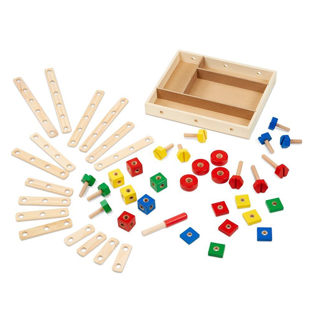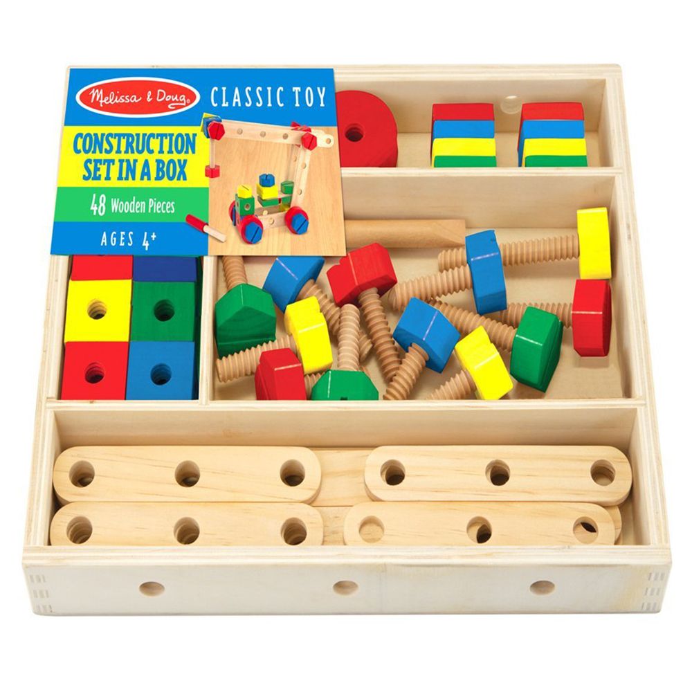 The Melissa & Doug Construction Set in a Box is a fantastic building toy that encourages imaginative play and fine motor skill development in children aged 4 and up. This 48-piece set includes wooden nuts, bolts, slotted pieces, and a screwdriver, all designed to be easy for small hands to manipulate. Children can follow the included building ideas or create their own unique structures, fostering creativity and problem-solving skills. The set comes in a sturdy wooden box for convenient storage.