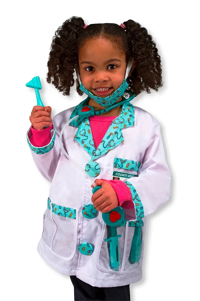 This engaging role-play set allows children to step into the role of a caring doctor. It includes a realistic doctor's coat, a face mask, a stethoscope with sound effects, a reflex hammer, an ear scope, a syringe, and a reusable name tag. This set encourages imaginative play, fosters empathy, and helps develop social skills as children engage in check-ups and caring for others.