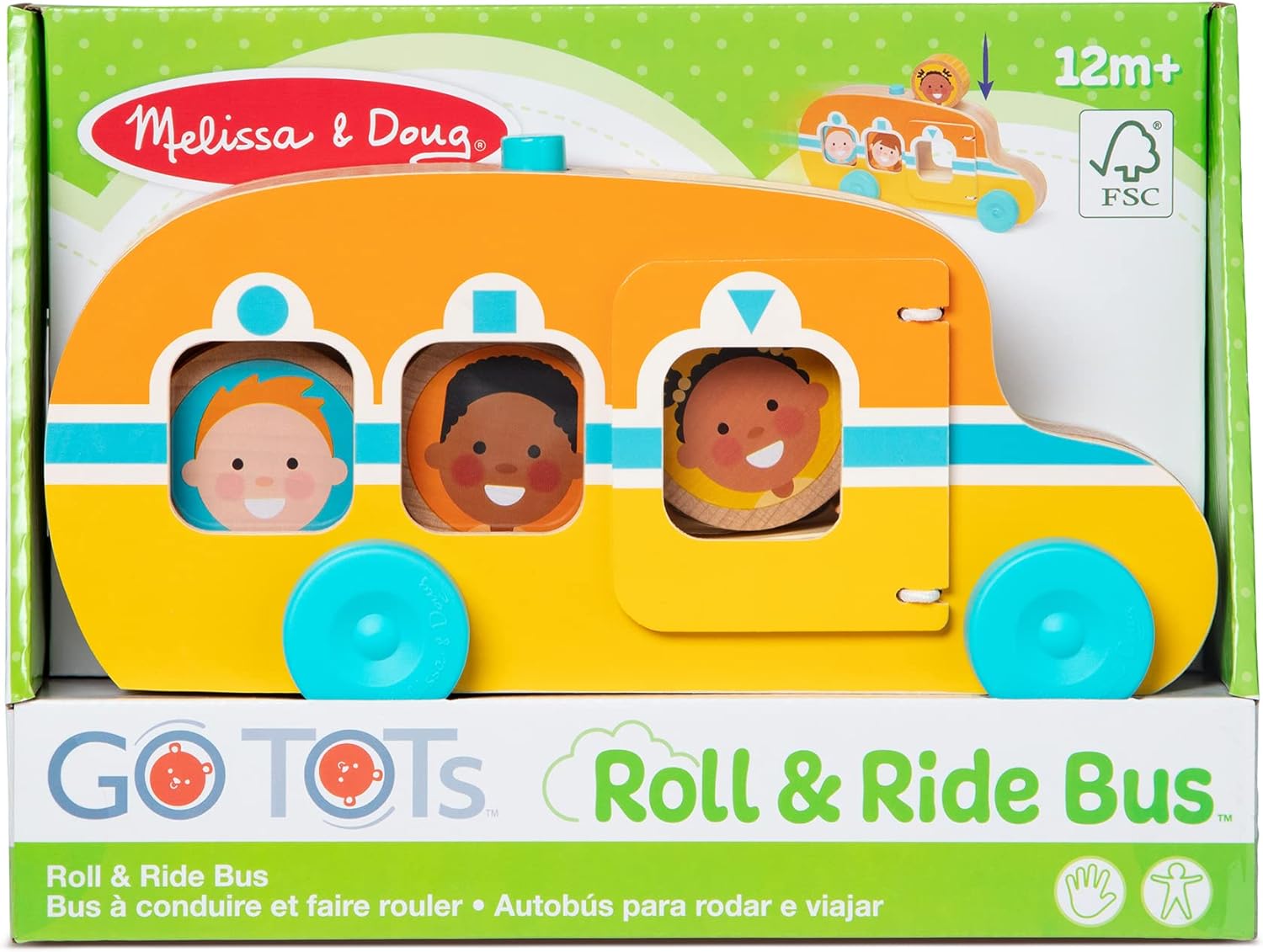 All aboard for a fun-filled adventure with the Melissa & Doug GO TOTs Roll & Ride Bus! This engaging wooden pull toy features a friendly yellow school bus with a removable GO TOTs driver figure. As children pull the bus along, the driver playfully bobs up and down, adding an extra element of excitement. Designed for toddlers, this durable toy encourages early walking, develops gross motor skills, and inspires imaginative play as they transport their GO TOTs friends around town.