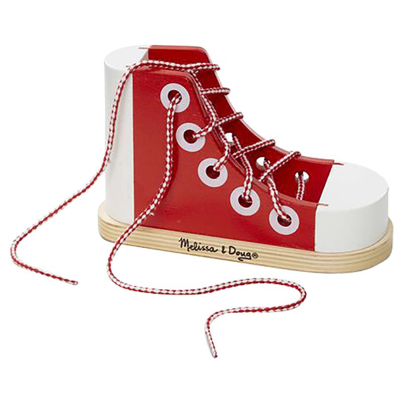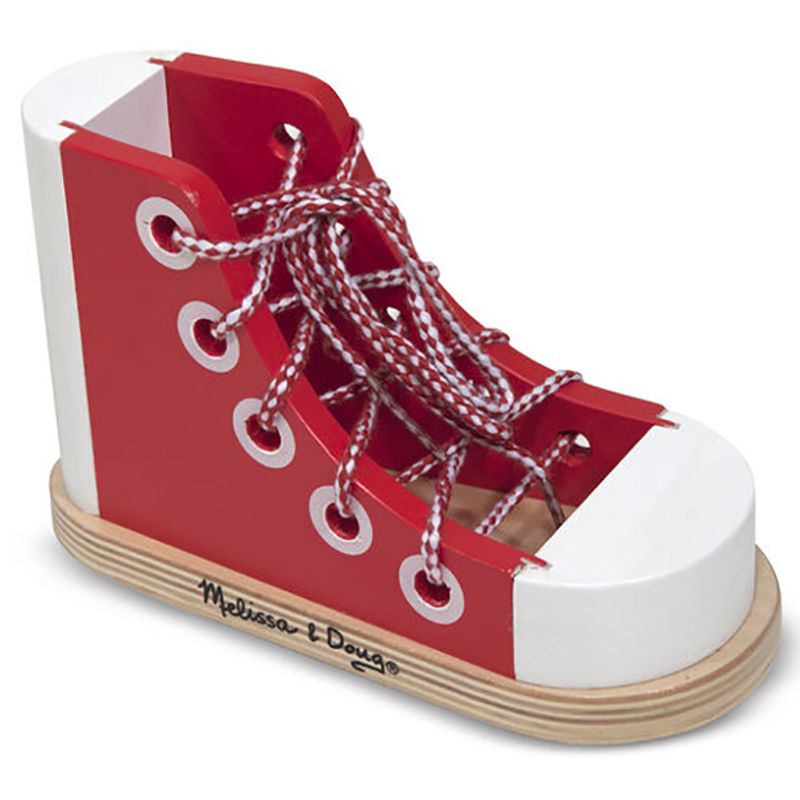 This classic wooden lacing shoe provides a fun and practical way for children to learn how to tie their shoes. It features a brightly colored wooden shoe with real laces, allowing children to practice lacing, tying, and knotting. This activity is designed to develop fine motor skills, hand-eye coordination, and essential self-dressing abilities.