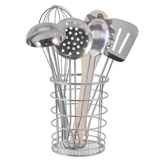 The Melissa & Doug Let's Play House! Stir & Serve Cooking Utensils set is a delightful and realistic play kitchen accessory designed for children aged 3 and up. This seven-piece set includes a whisk, ladle, slotted spoon, spaghetti server, wooden spoon, and spatula, all made from durable stainless steel and wood. Perfectly sized for little chefs, this set encourages imaginative role-playing, fine motor skills, and a love for cooking. It also comes with a convenient storage caddy.