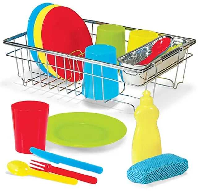 The Melissa & Doug Let's Play House! Wash & Dry Dish Set is a delightful and realistic play kitchen accessory designed for children aged 3 and up. This 24-piece set includes four place settings (plates, cups, forks, spoons, knives), a dish rack, and a dish soap bottle, providing everything little ones need for imaginative dishwashing play. Made from durable, child-safe plastic, this set encourages creative role-playing, fine motor skills, and an introduction to household chores.