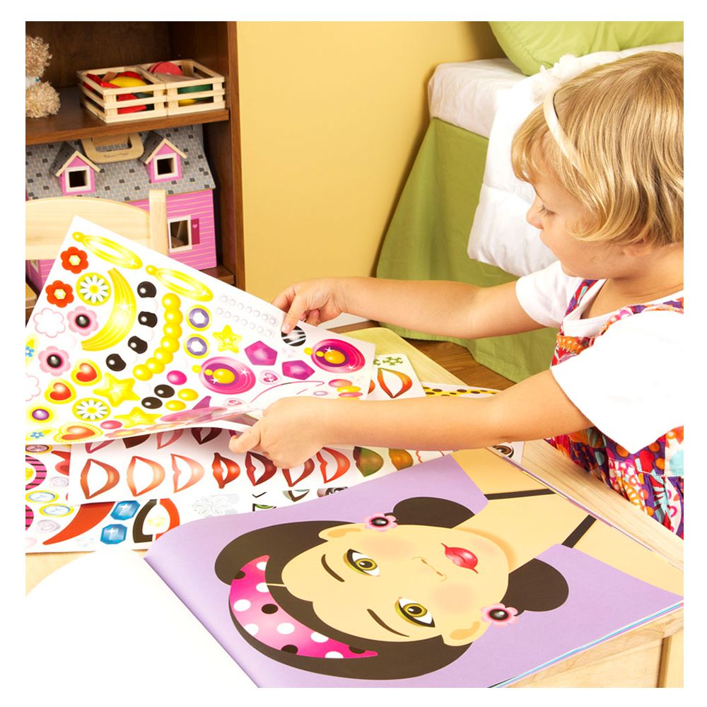 Unleash your inner fashionista with the Melissa & Doug Make-a-Face Fashion Faces Sticker Pad! This extra-large sticker activity pad features 20 pages of colorful background scenes with various fashion models, along with over 160 delightful stickers including eyes, noses, mouths, hairstyles, accessories, and more. Children can create endless unique looks, fostering imaginative play, fine motor skills, and creative expression. The reusable stickers allow for countless combinations and storytelling possibilities.