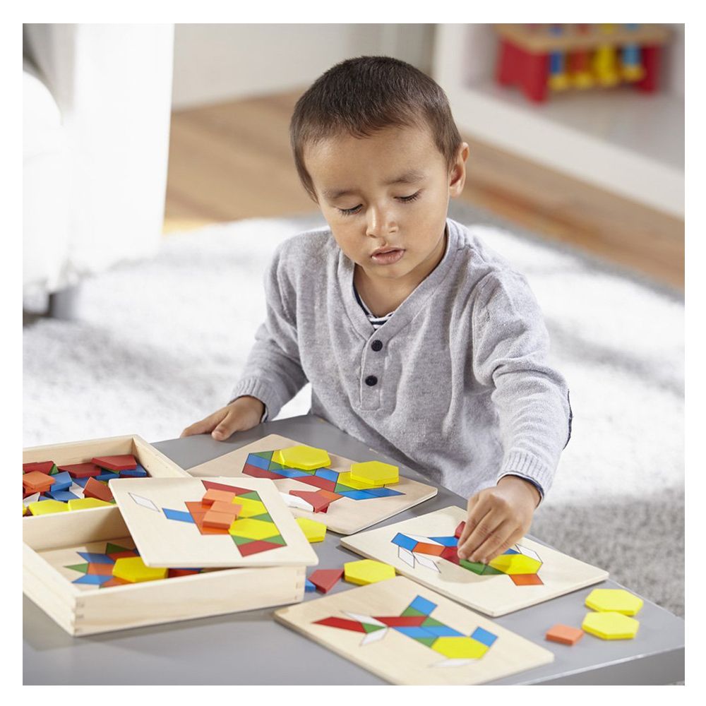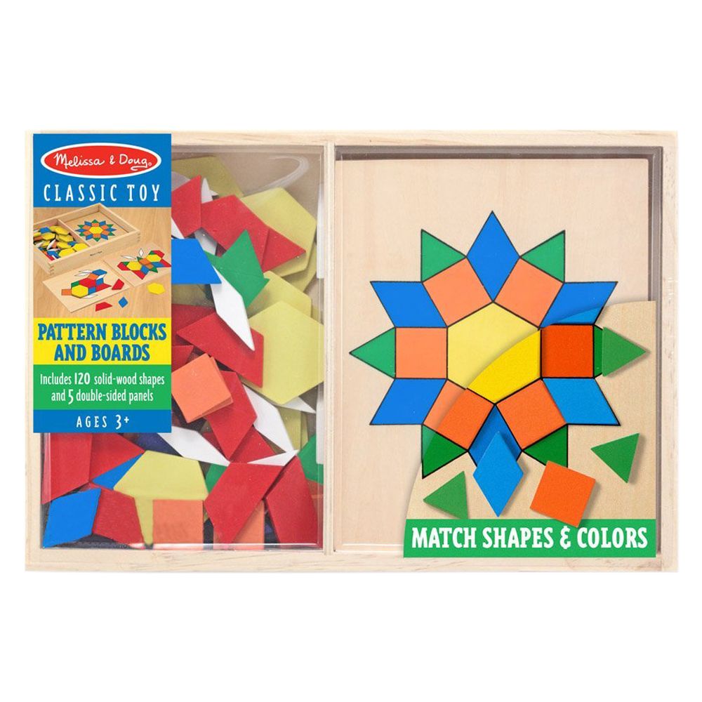 - 10 double-sided wooden pattern boards with engaging designs.