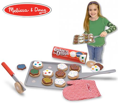 The Melissa & Doug Slice and Bake Cookie Set is a delightful and imaginative play food toy designed for children aged 3 and up. This 28-piece set includes 12 wooden sliceable cookies, 12 toppings, a wooden knife, a spatula, and a sturdy cookie dough tube for storage. The cookies are held together with self-stick tabs, allowing children to "slice" them apart and then decorate them with various colorful toppings. This set encourages fine motor skills, counting, creative expression, and imaginative role-playing in the kitchen.