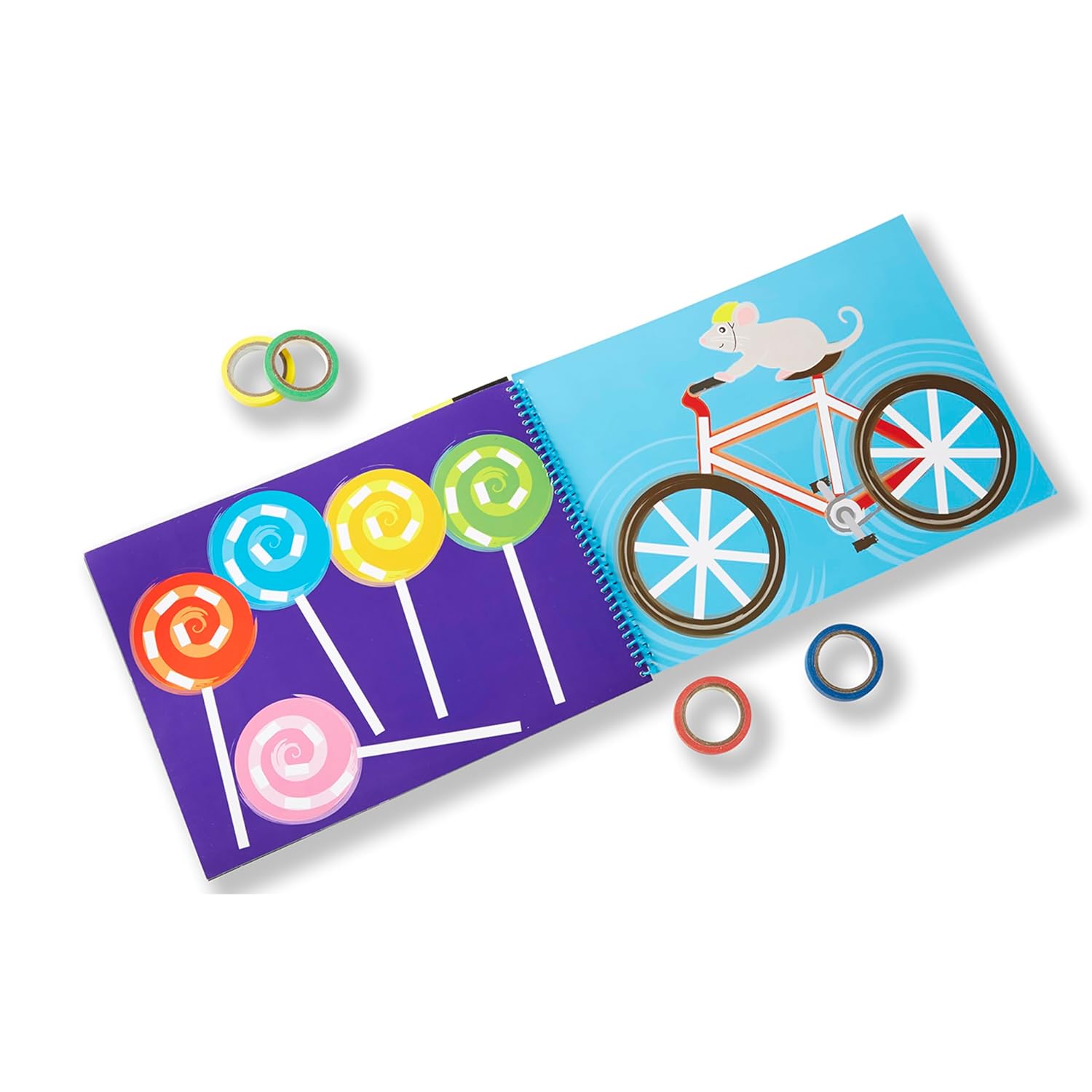 Unleash creativity with the Melissa & Doug Tape Activity Book, a unique and engaging craft book that combines drawing, coloring, and tape art. This spiral-bound book features 20 pages of exciting scenes and projects, along with 10 rolls of colorful tape in various patterns and widths. Children can use the tape to create roads, borders, patterns, and designs, adding a fun, tactile dimension to their artwork. It's a fantastic way to develop fine motor skills, hand-eye coordination, and imaginative expression without the mess of glue.