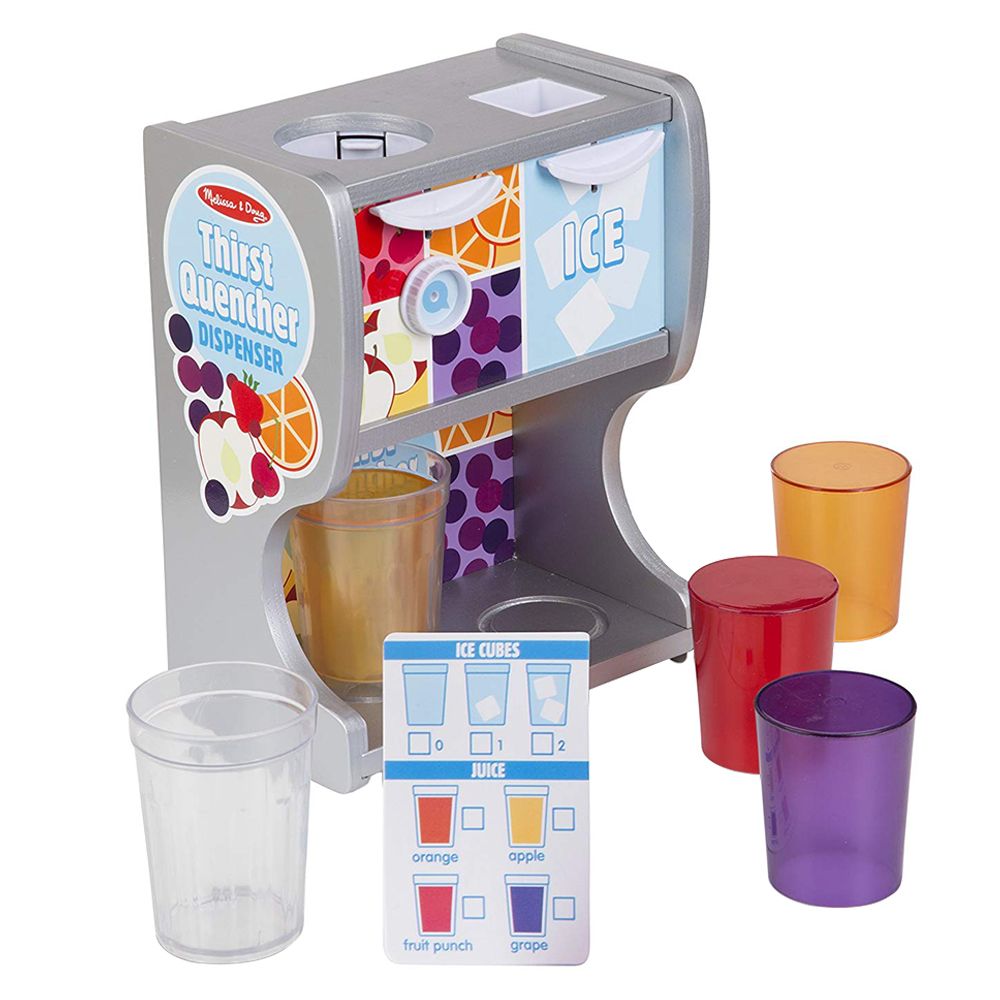 - Interactive Dispenser: Kids can load ice cubes and drink inserts, turn a dial, and press a lever to dispense "chilled drinks" into cups.