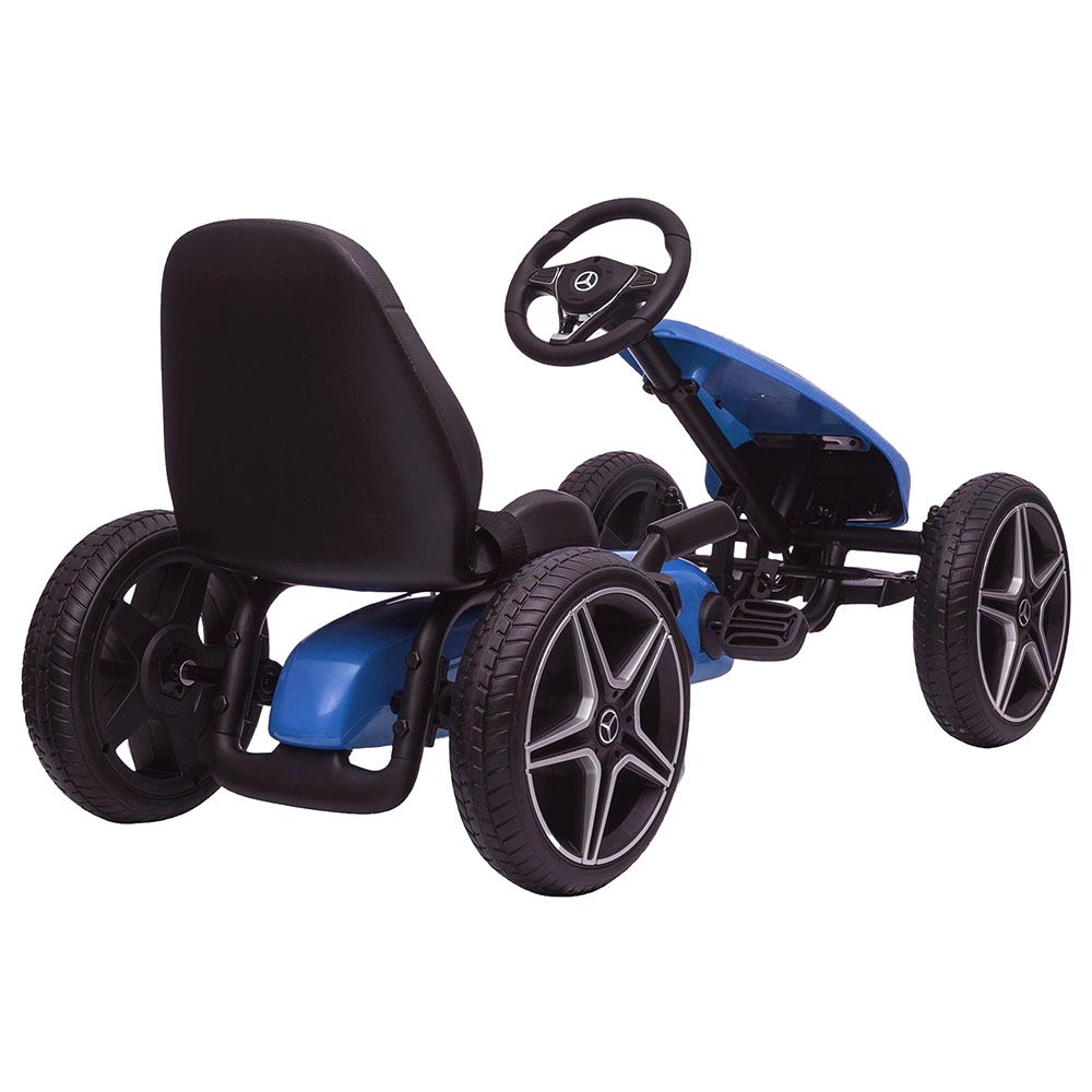 The go-kart guarantees a pleasant time outdoors - it will make walks and joint trips take on a completely different character. The black, wide and adjustable seat with backrest and the ergonomically shaped steering wheel are responsible for driving comfort. These amenities, combined with soft wheels, make the presented go-kart meet all your requirements - check it out for yourself! We believe that giving your child this fantastic go-kart will encourage them to take up physical activity outdoors. Independent driving and maneuvering the vehicle will make a young child more independent and responsible. Recommended Age: Suitable for 3 to 7 years.