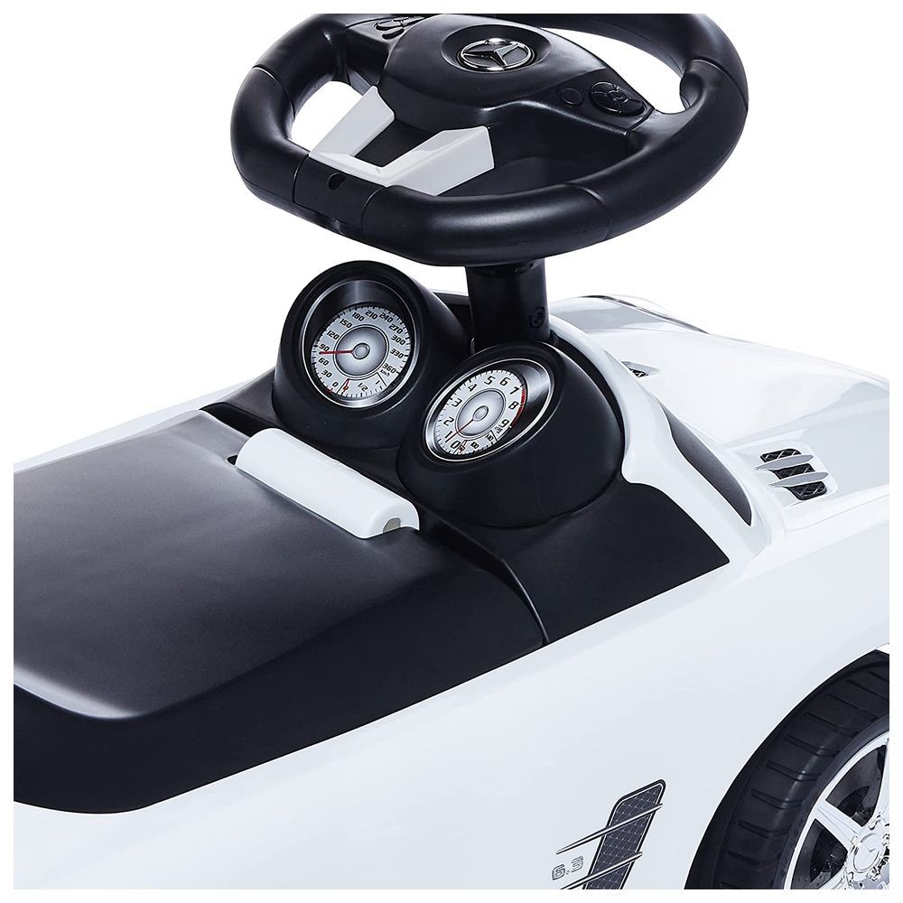 Pusher car Mercedes has durable Material. It is easy & Safe to operate and has the Emulational Sound Horn.They are Horn and music sounds in Steering and Includes storage space Grows with your child Non-battery powered Steering wheel plays music and horn sounds Under the seat storage.