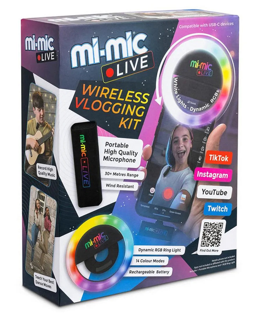 FEATURES: the package includes a clip-on microphone, a hub connector for Android phones via USB-C and an LED ring light, giving young creators a more professional setup