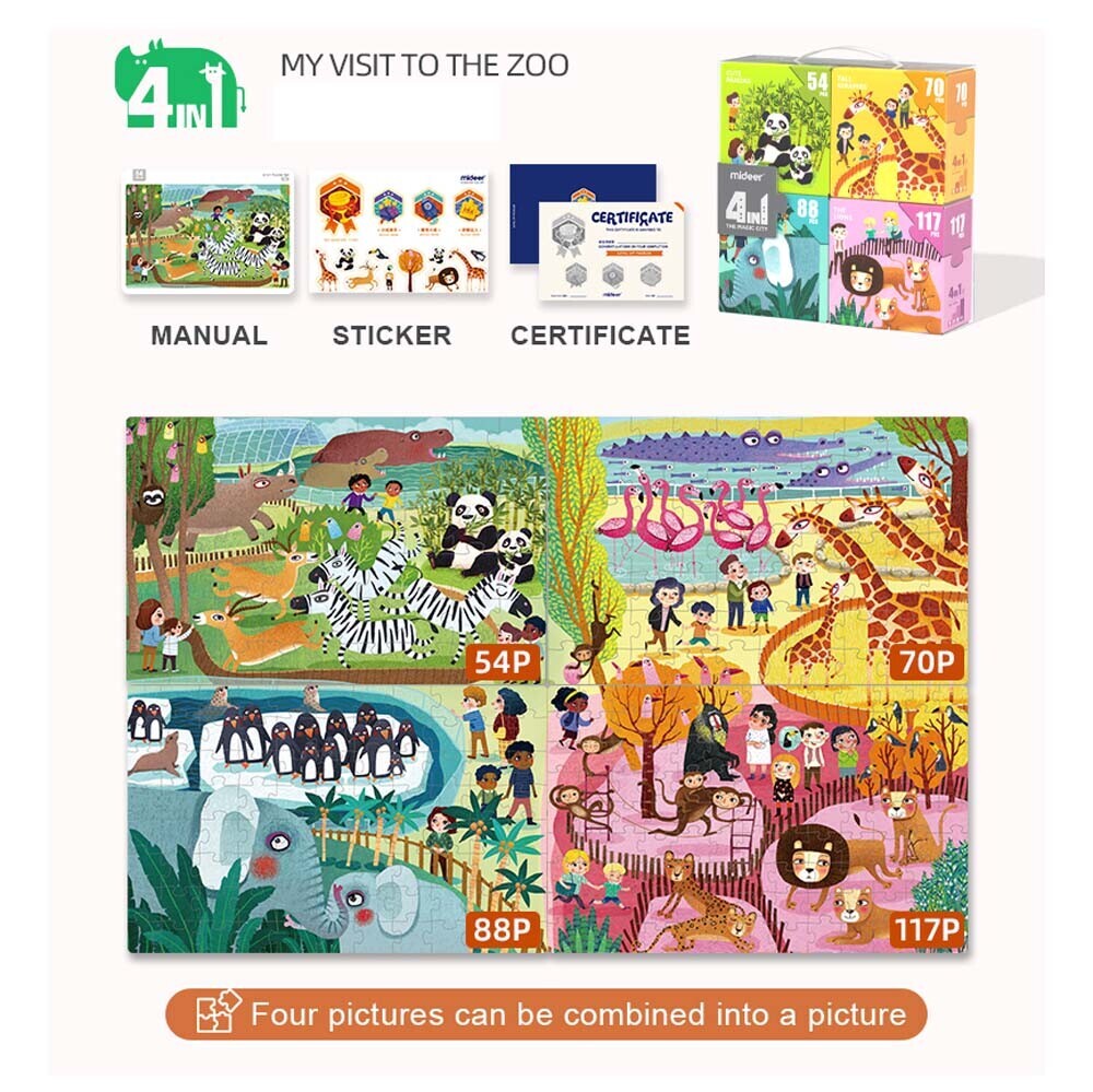Build your little one's confidence and slowly introduce them into puzzles with this progressive puzzle bundle. Start with the 55 pcs box before tackling the higher level boxes with up to 117 pcs.