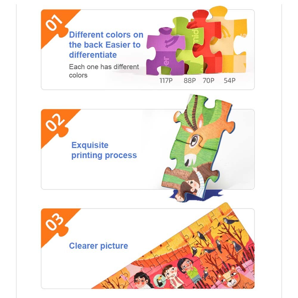 Build your little one's confidence and slowly introduce them into puzzles with this progressive puzzle bundle. Start with the 55 pcs box before tackling the higher level boxes with up to 117 pcs.