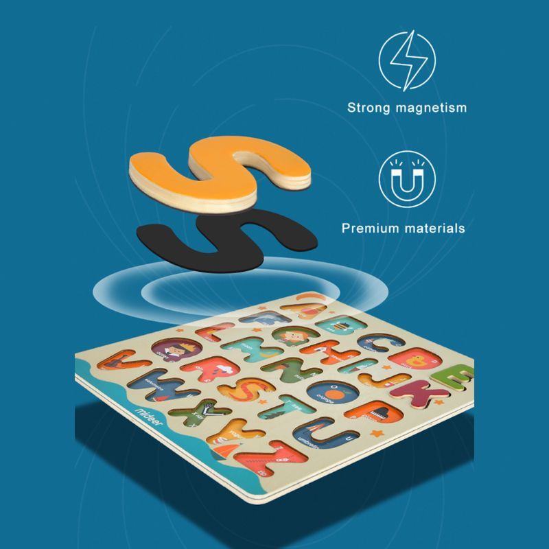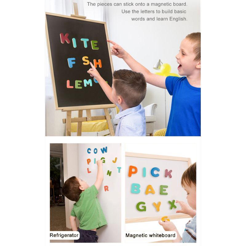 26 Funky Chunky and colourful alpha-blocks to help little hands learn their ABC with these magnetic wooden blocks. Lots of Shape sorting and alphabet learning. Children will enjoy learning alphabets. Letters are Perfectly sized for small hands.