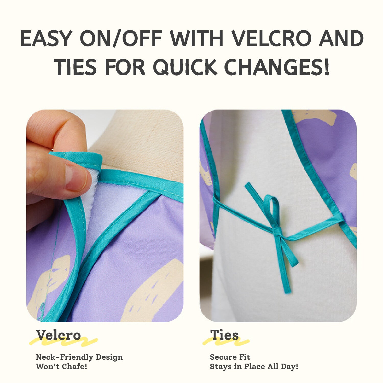 - Easy To Wear & Remove: Equipped with soft elastic cuffs, Velcro closure, and secure ties, this smock is simple for kids to put on and take off independently.
