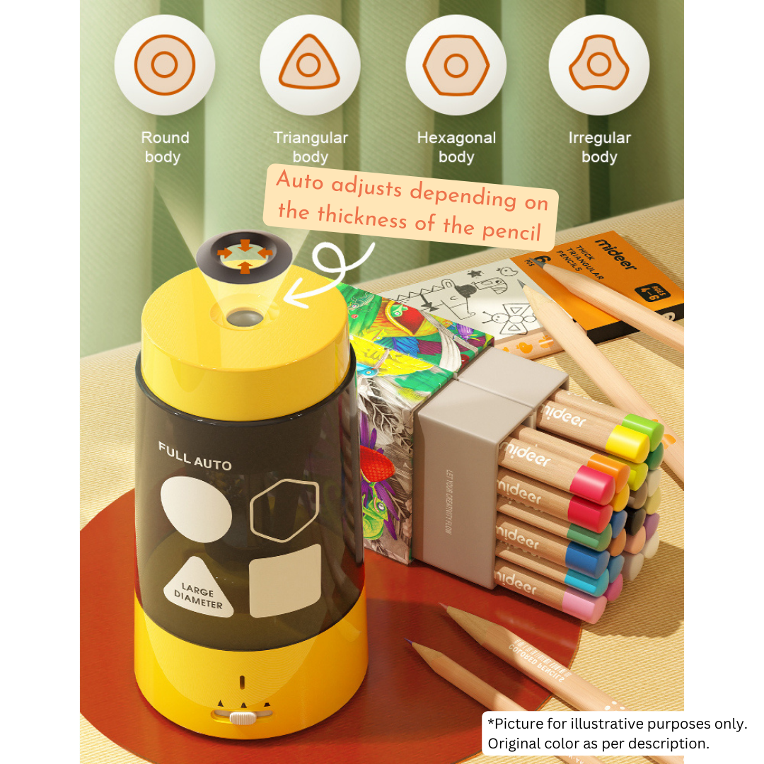 Upgrade your pencil sharpening experience with the Mideer Automatic Pencil Sharpener. Whether you're a student, artist, or professional, this sharpener's adjustable sharpness, auto lead disposal, LED indicator, rechargeable battery, high speed, and large capacity combine to create the ultimate pencil sharpening tool for precision and productivity.