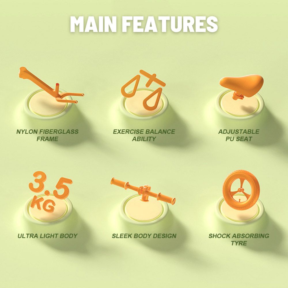 For young children who have lots of energy and love to be active, the Mideer Balance Bike is perfect. Children just starting to ride a bike can benefit from balancing bikes to improve their balance, develop their gross motor skills, and boost their self-confidence. The precision bearings provide a smooth and comfortable ride, while the fiber body offers great strength and impact resistance. , , The lightweight design and adjustable seat make it suitable for kids from 2 years up to 6. The carefully thought out features such as the low center of gravity, textured grips, padded seat, and shock-absorbing tires make this balance bike one of a kind.
