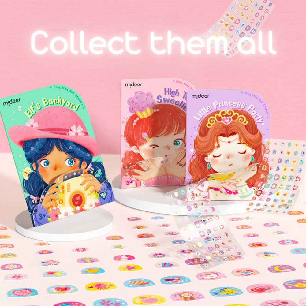- Mideer Bling Bling Nail Stickers are a set of 180 stickers designed for kids.