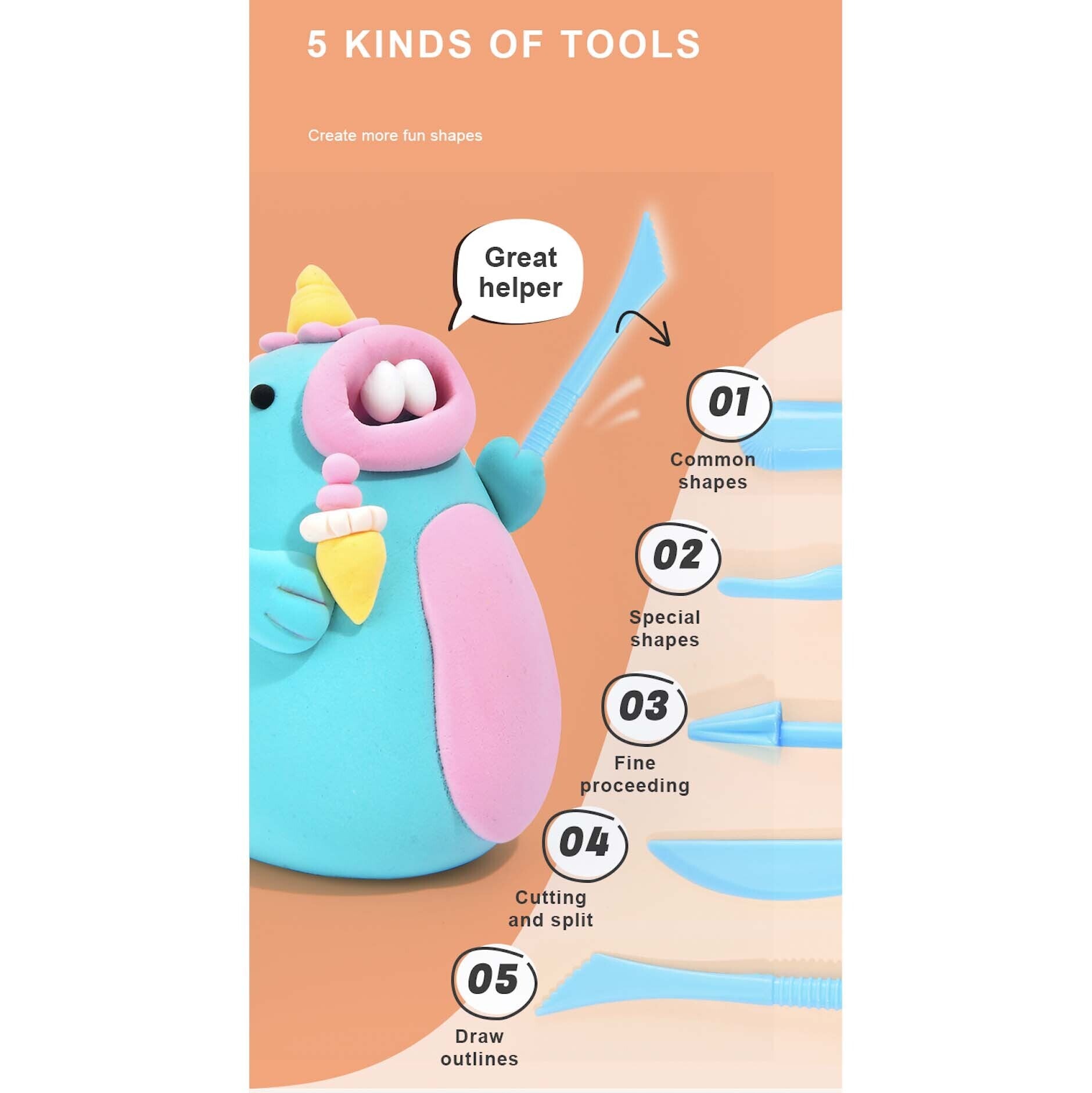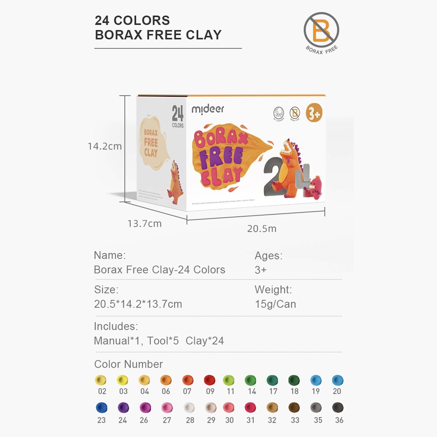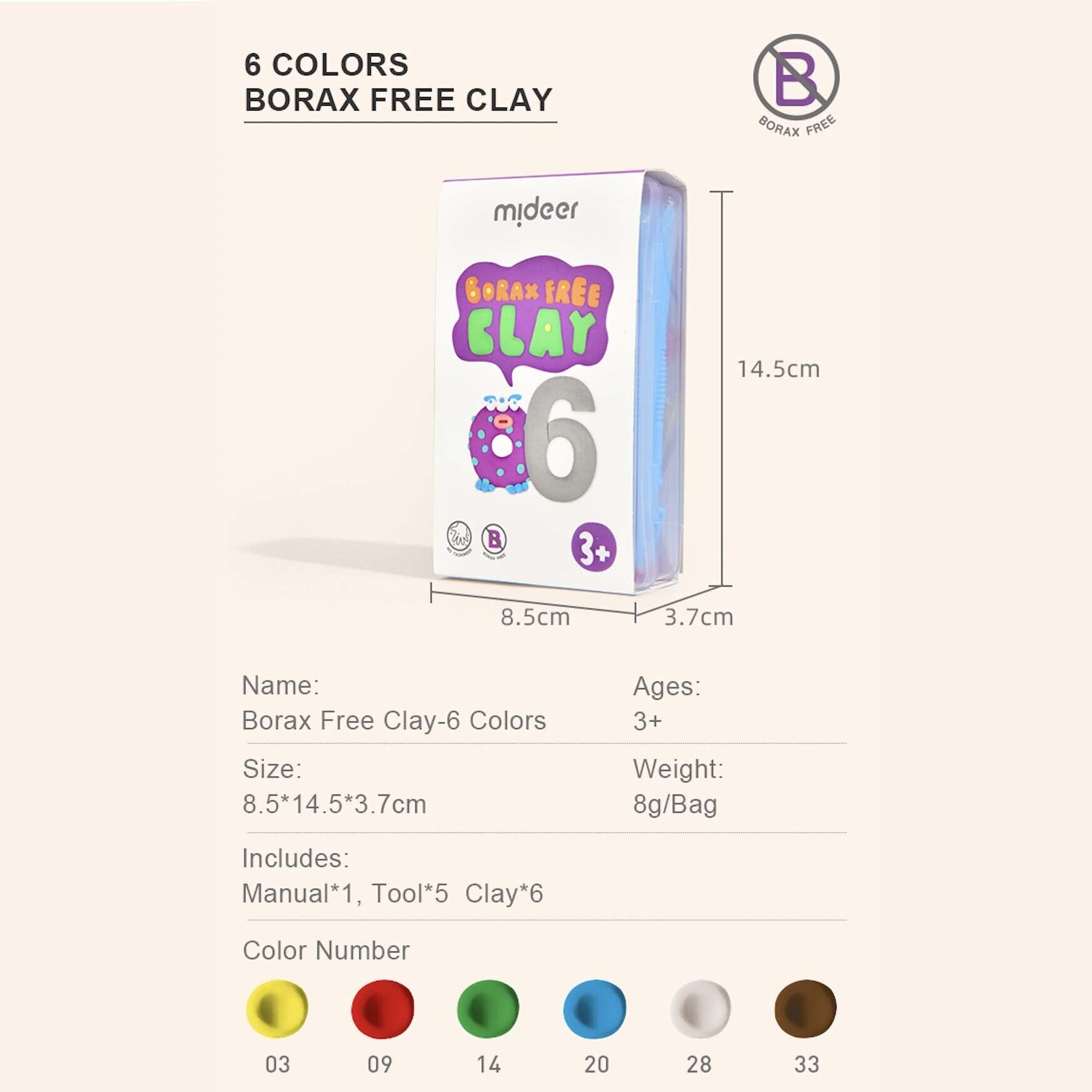 Mideer's Borax-free clay is free from pungent odors and various impurities. The non-sticky and high ductility formula makes for a fun-filled experience for your child. Complete your clay collection with this color-rich set and create a variety of designs at will.