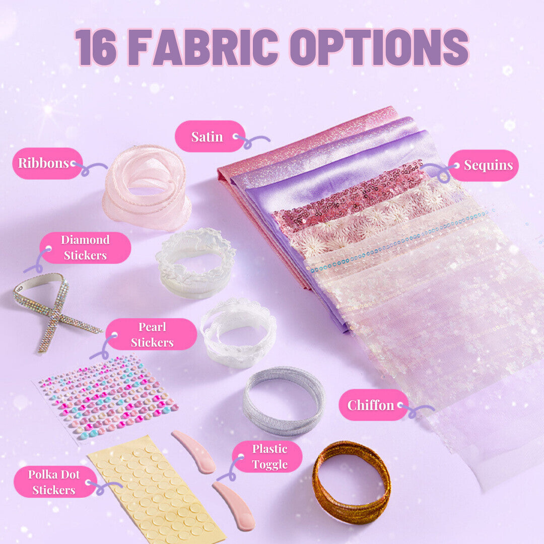 - Includes fabric, stickers, sequins, and more for limitless design possibilities.