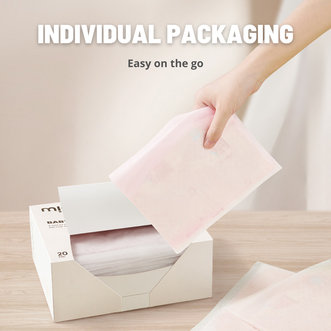 This helps to keep your baby's clothes and surroundings clean and tidy, making mealtime less messy and stressful for both you and your little one.One of the key features of Mideer Disposable Baby Bibs is their individual packaging. Each bib is individually wrapped, making them easy to store in a diaper bag or purse, and perfect for use when you're out and about. The packaging also ensures that each bib is clean and hygienic, making them a great choice for use in public places.