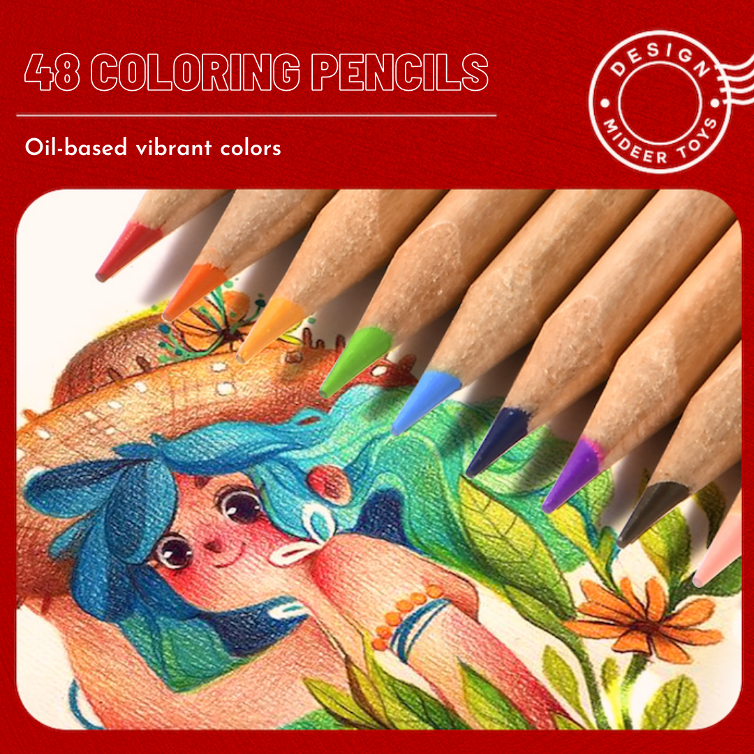The 18 gouache paints provide a great way to add a watercolour effect to your artwork. , , These paints are easy to mix and blend, allowing you to create a wide range of colours and shades. Finally, the 48 colouring pencils included in the kit offer a versatile and easy way to add fine details and shading to your drawings. These pencils are made from high-quality materials and come in a range of colours to suit any artistic style or preference.