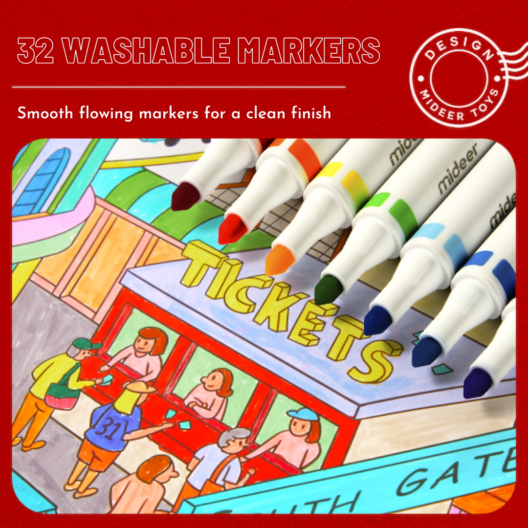 - Washable markers come in a range of vibrant colours for adding bold and bright colours to artwork