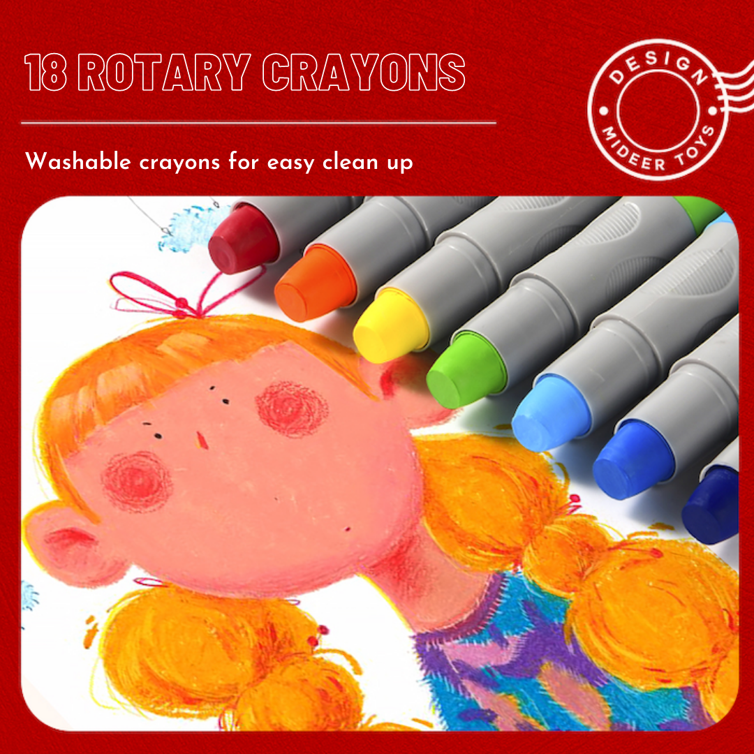 - Rotary crayons feature a unique design for adjusting precision and creating detailed drawings