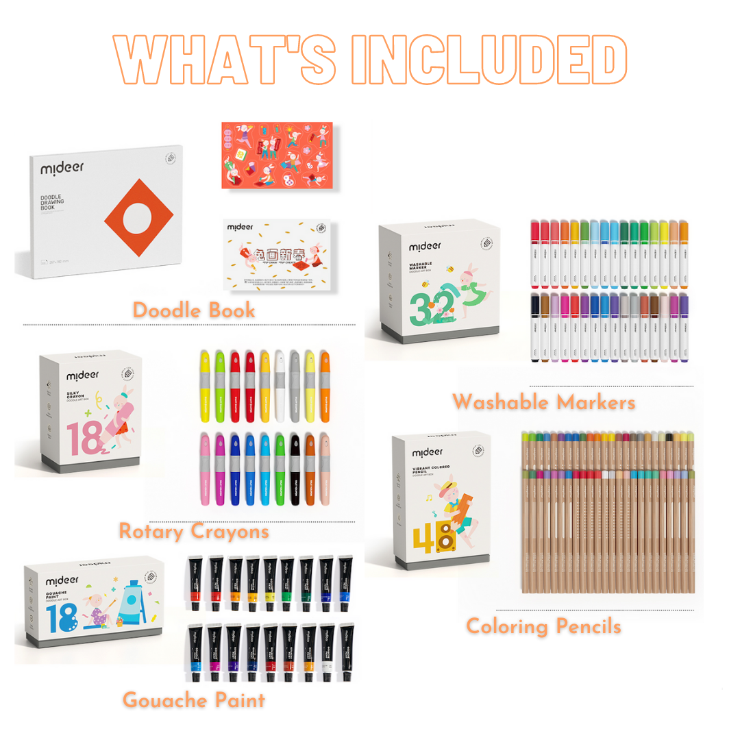 - The Mideer Doodle Art Kit is a comprehensive art set for unleashing your creativity and imagination
