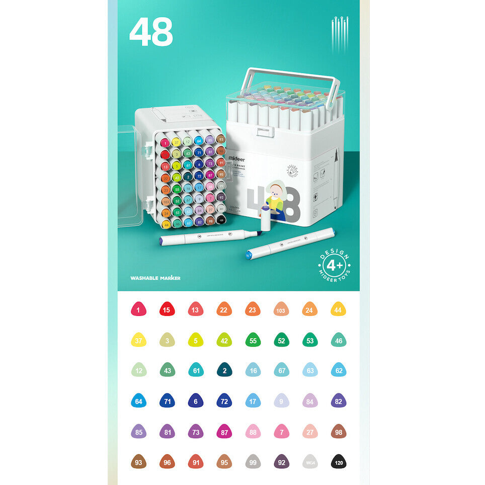 The Mideer Dual Tip Markers is a must-have for any creative toolset, whether it's for a beginning artist or a professional colorist. They provide an almost limitless range of possibilities. Flexibility is essential for any artist. For a wide range of sketching styles, each dual-tip marker includes a broad chisel and fine point nibs. This is the only marker set you'll ever need!