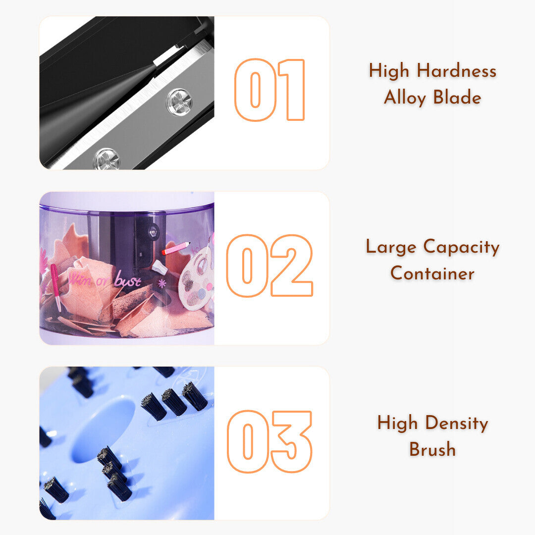 - Comprehensive set: Includes 6 high-quality 2B pencils, an electric pencil sharpener, an electric eraser with 50 refills, and a desktop vacuum cleaner.